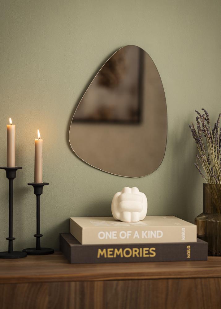 To asymetryczne lustro stanie się naprawdę stylowym i modnym elementem dekoracyjnym w Twoim domu! Oprócz interesującego jajowatego kształtu, lustro to ma również stylowe szkło lustrzane w kolorze brązu, co dodatkowo wzmacnia nowoczesny wygląd i pięknie harmonizuje z wieloma różnymi schematami kolorystycznymi. Miękki kształt w połączeniu z faktem, że lustro jest bardzo cienkie i nie ma ramy, nadaje mu rzadką elegancką i smukłą prezencję. Doskonałe jako funkcjonalna i modna dekoracja ścienna do salonu, przedpokoju lub sypialni.