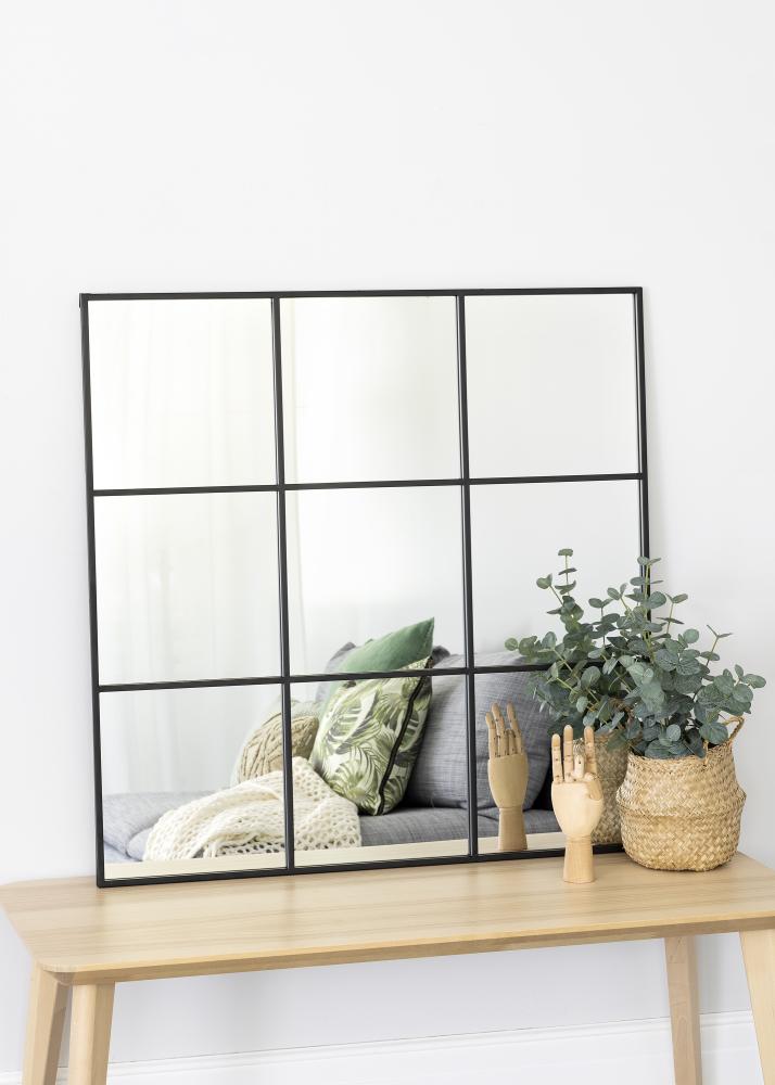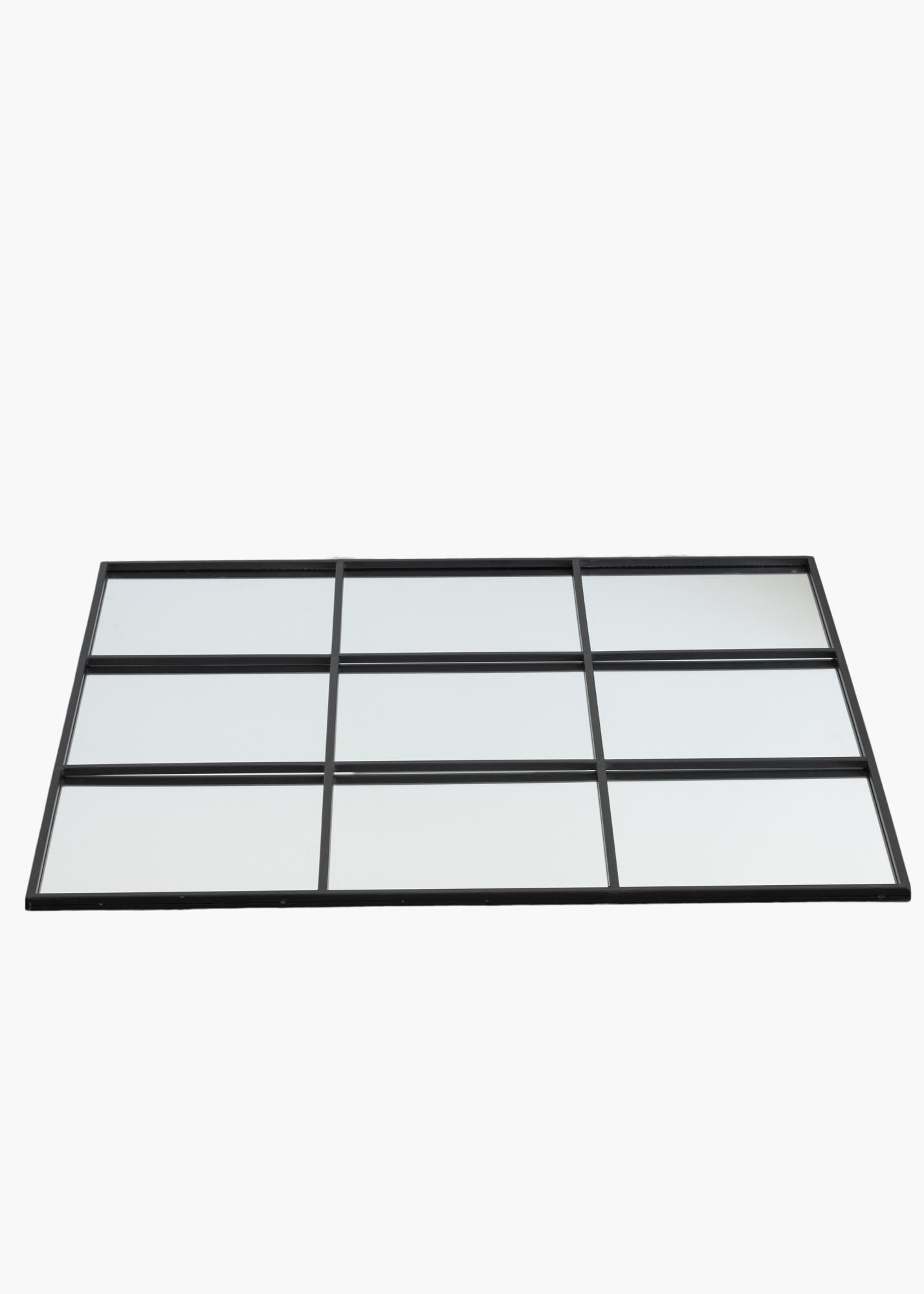 To jest lustro w kwadratowym kształcie z eleganckim wzorem kratki. Kratki są stylowo obramowane cienkimi czarnymi liniami z metalu, co nadaje temu lustru na ścianę rustykalny i industrialny charakter. Kwadratowy kształt sprawia, że lustro ma bardziej elegancki wygląd. Umieść to lustro na przykład w przedpokoju, kuchni lub sypialni, aby stworzyć więcej przestrzeni w pomieszczeniu, a jednocześnie dodać dekoracyjny element wystroju wnętrza. Mocowanie ścienne jest dostępne. Lustro ma wymiary 90x90 cm.