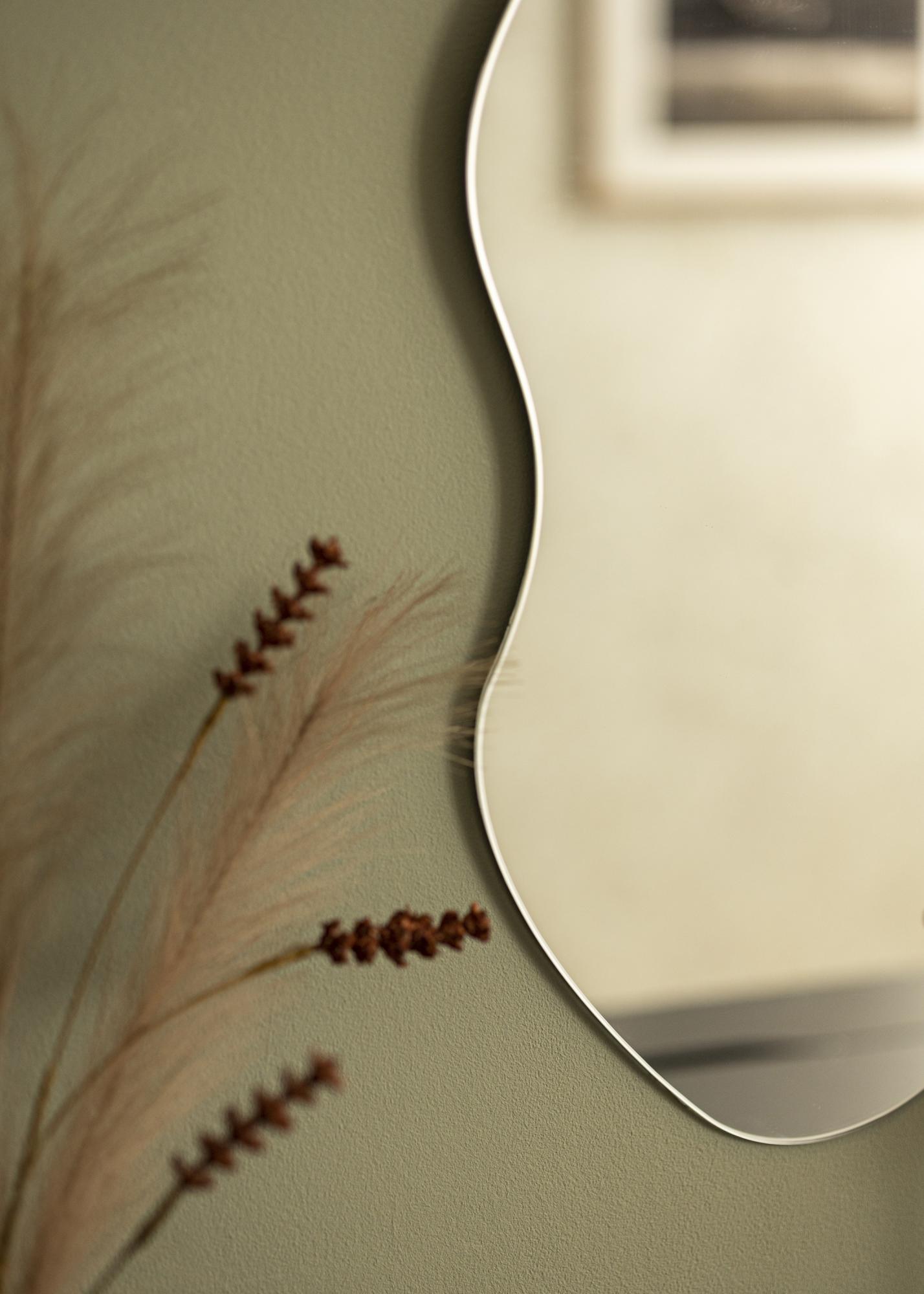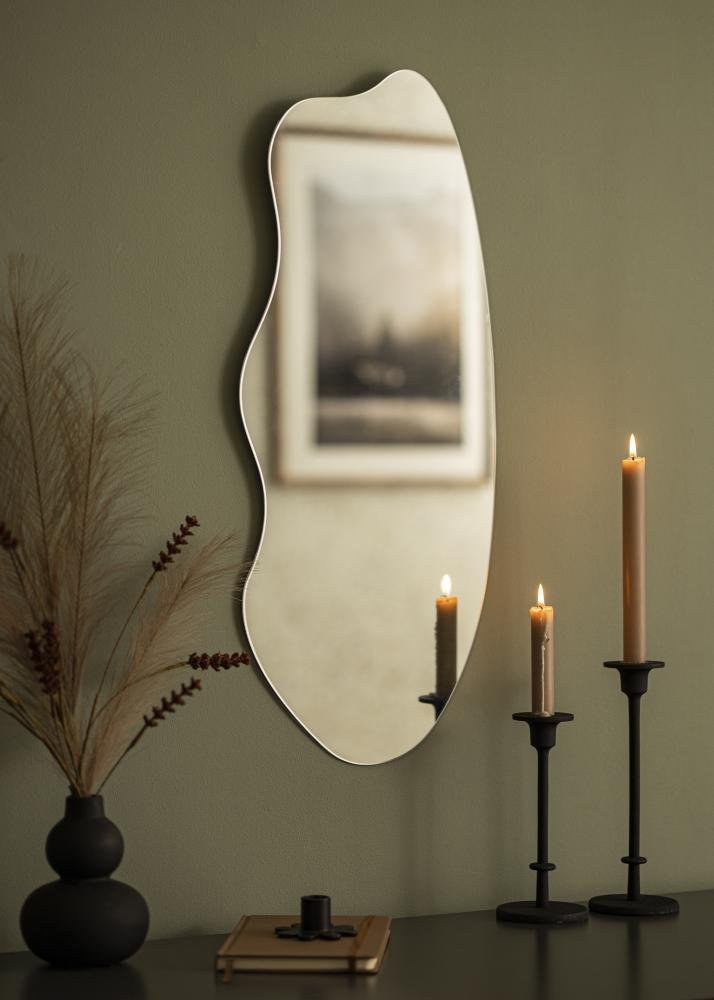 Asymetryczne lustro ścienne stanie się efektownym elementem dekoracyjnym w każdym domu. To lustro ma unikalny kształt, gdzie jedna długa strona jest zaokrąglona, a druga ma falistą formę. Razem tworzą ekscytującą i elegancką całość. Lustro doskonale nadaje się zarówno do przedpokoju, jak i salonu, a także sprawdza się jako nowoczesne lustro łazienkowe.