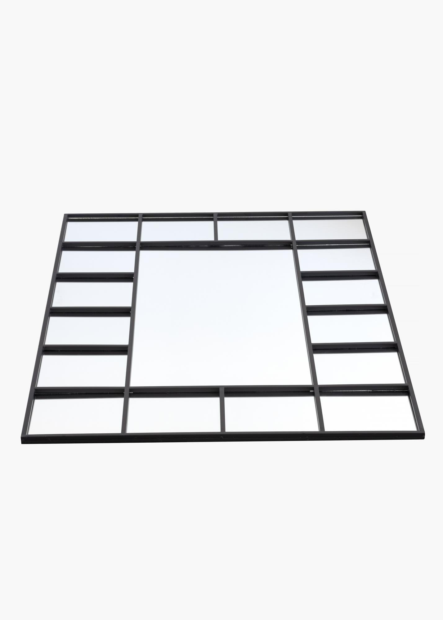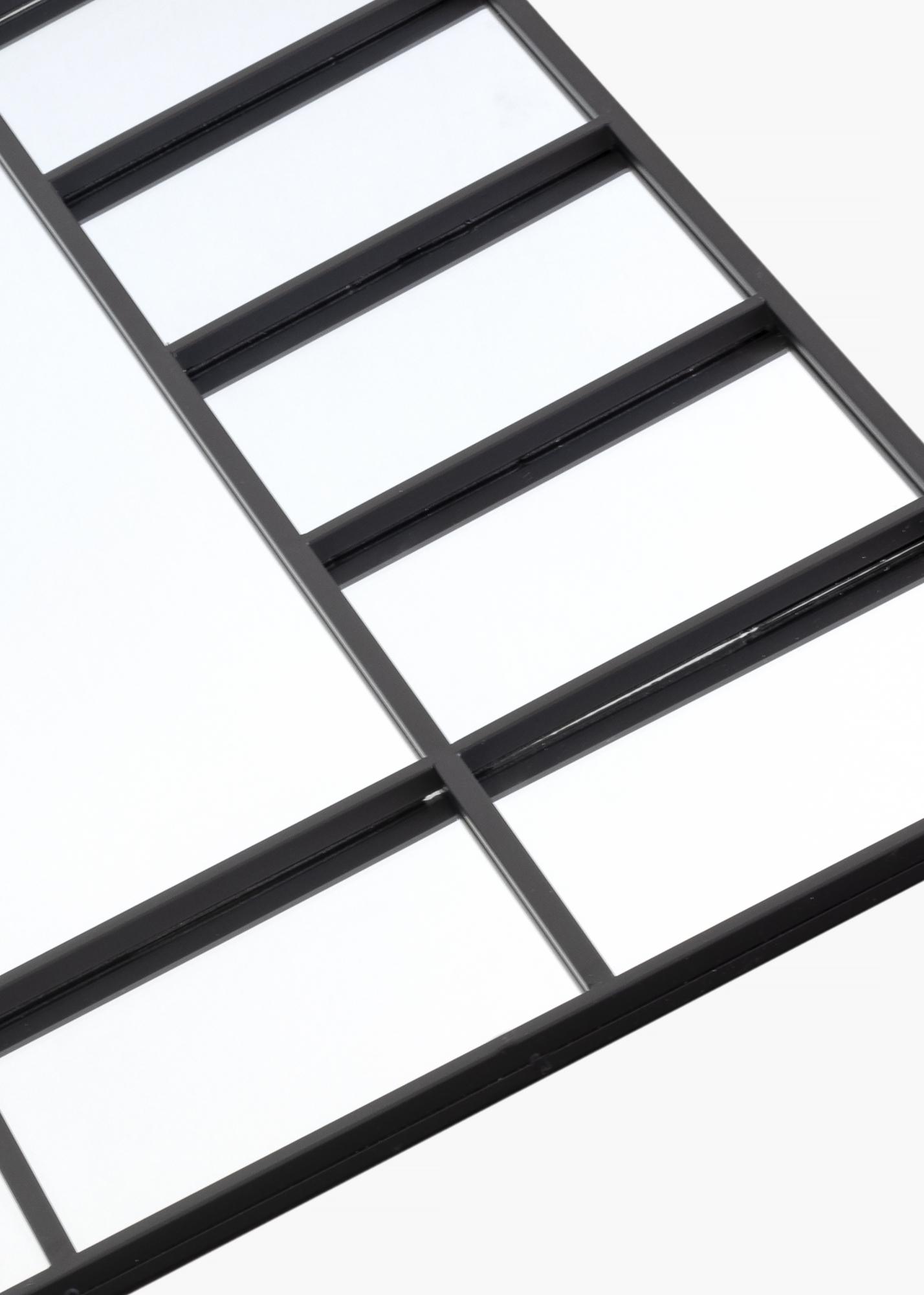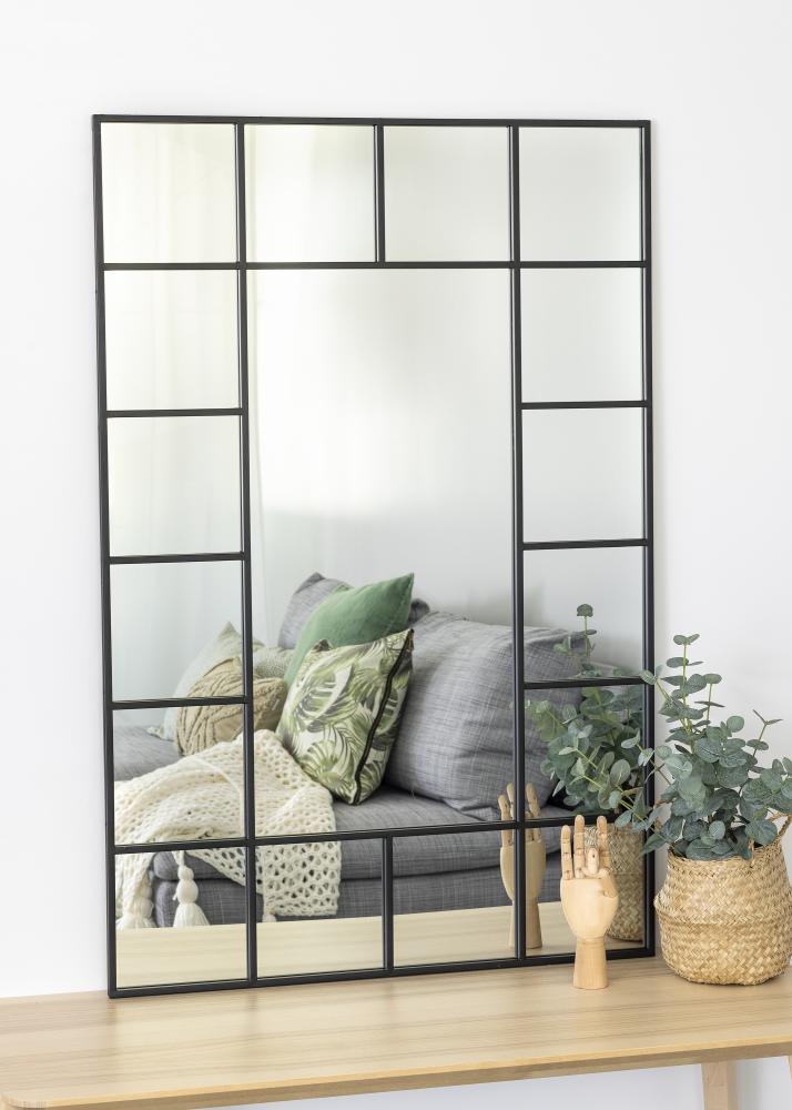 To eleganckie lustro od KAILA ma design przypominający piękne okno. Lustro posiada kilka różnych szyb, które estetycznie obramowują większą powierzchnię lustra w środku. Szyby są estetycznie obramowane cienkimi czarnymi liniami z metalu, co nadaje lusteru nieco przemysłowy, ale jednocześnie elegancki charakter. Uchwyty do montażu na ścianie są dostępne, ale lustro można również estetycznie oprzeć o ścianę. Lustro ma wymiary 80x120 cm.