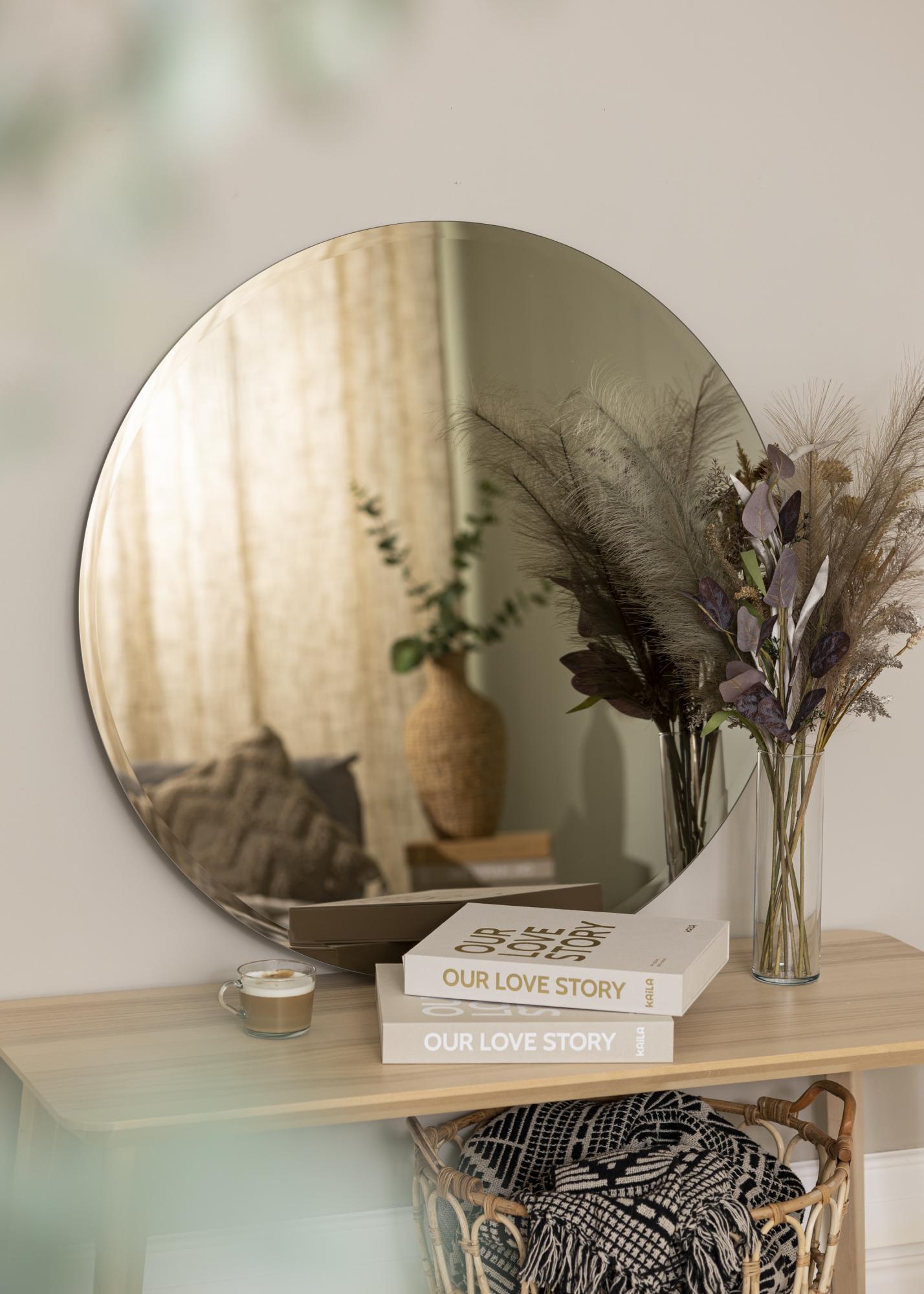 Lustro w ciemniejszym odcieniu brązu będzie ekskluzywnym elementem w Twoim domu. To lustro ścienne ma miękki, okrągły kształt i eleganckie szkło lustrzane w brązowym odcieniu. Ekskluzywny wygląd dopełnia szlifowana krawędź fazowana. Lustro sprawdza się równie dobrze samo, jak i w połączeniu z innymi lustrami w różnych rozmiarach i odcieniach kolorów.