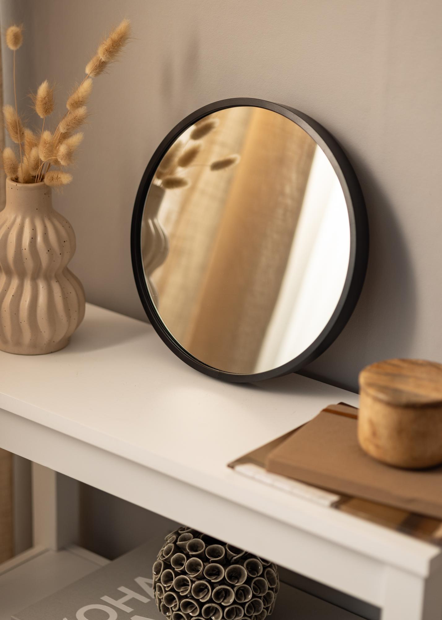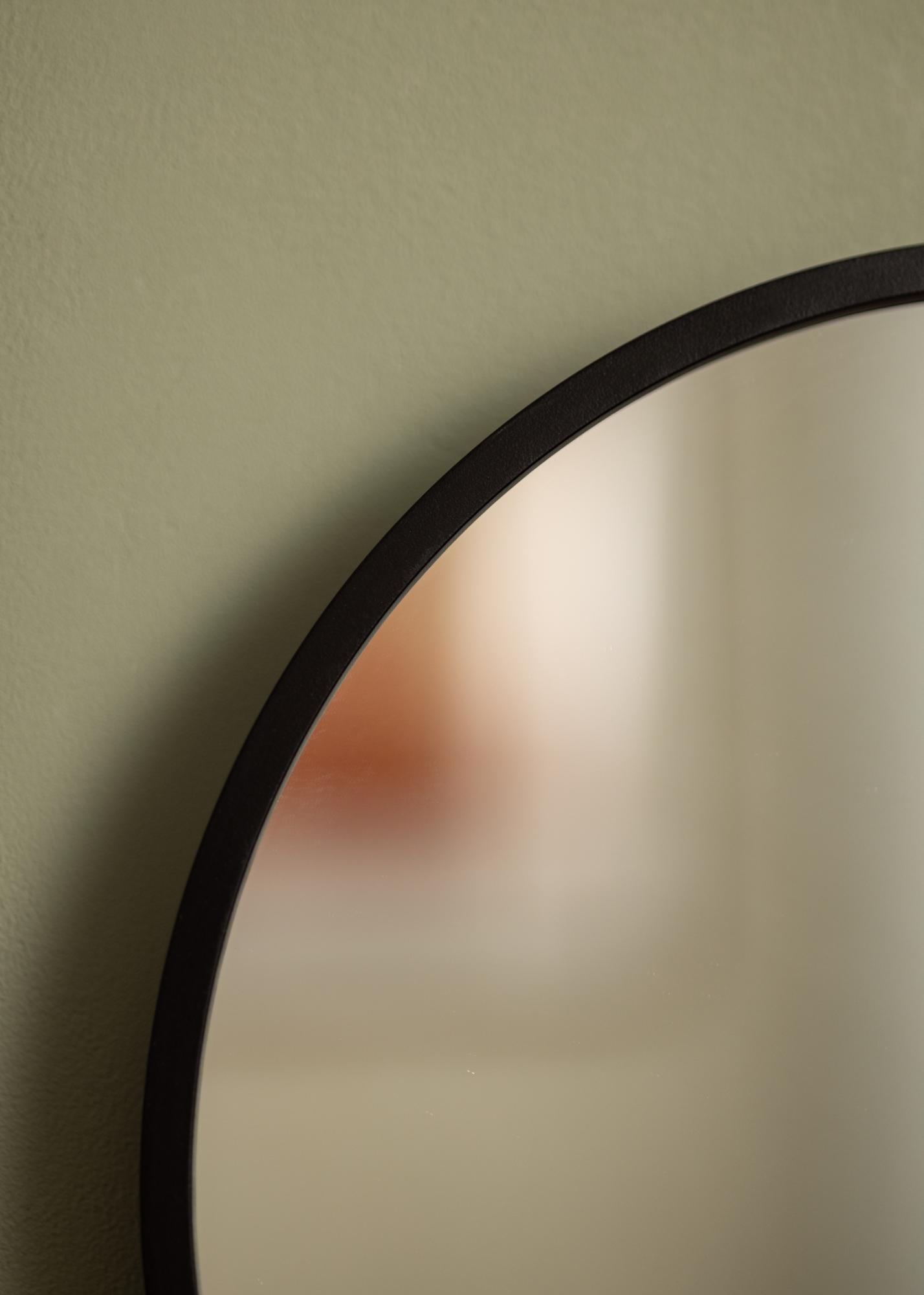 KAILA Round Mirror Edge Black to okrągłe lustro z elegancką cienką metalową ramą w kolorze matowej czerni, co nadaje mu industrialny i modny charakter. Rama ma – w zależności od rozmiaru – głębokość od 30-40 mm, co sprawia, że tafla lustra wychodzi nieco poza ścianę, tworząc efektowny efekt 3D. Głębokość ramy sprawia również, że lustro wydaje się solidne, zachowując przy tym minimalistyczny wygląd. Idealne okrągłe lustro, które można umieścić w każdym pomieszczeniu, gdzie chcesz dodać funkcjonalność i stylowy szwedzki design!
