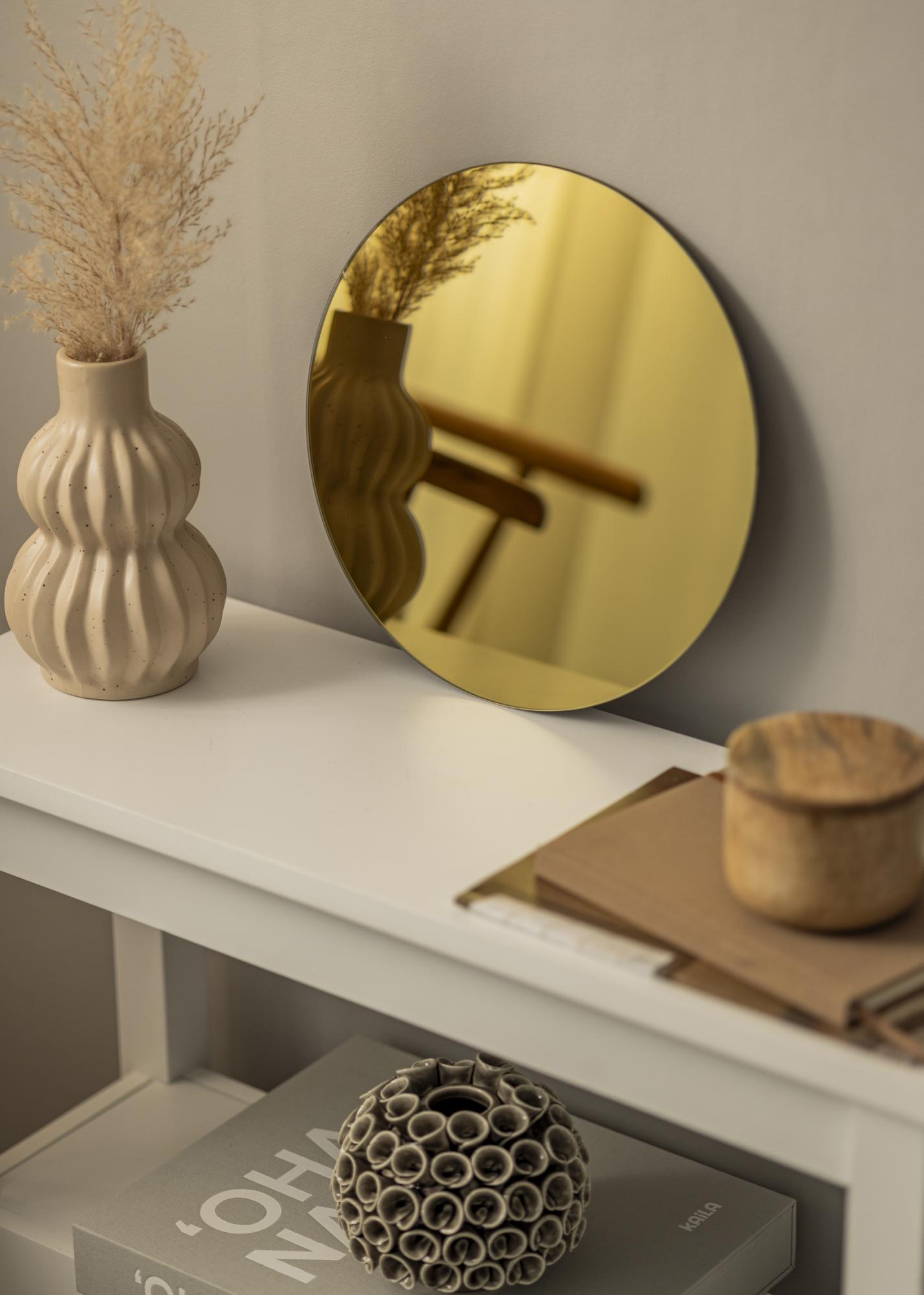 KAILA Okrągłe Lustro Złote jest dostępne w kilku rozmiarach, a prezentowany wariant ma wielkość 30 cm Ø.