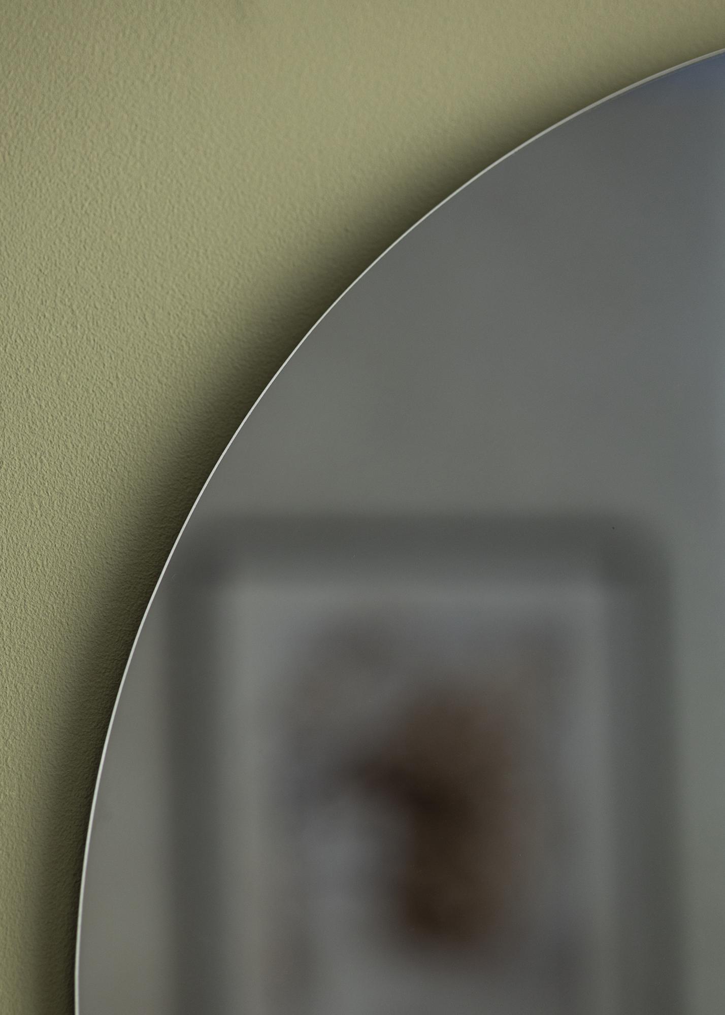 KAILA Rund Lustro Smoked Grey to modny okrągły lustro z eleganckim przyciemnianym szkłem lustra. Lustro jest również bardzo cienkie i nie ma ramki, co nadaje mu elegancki i smukły wygląd. Ten odchudzony design w połączeniu z przyciemnianym szkłem lustra skutkuje nowoczesnym i przyciągającym uwagę lustrem o eleganckim i wyrafinowanym wyglądzie.