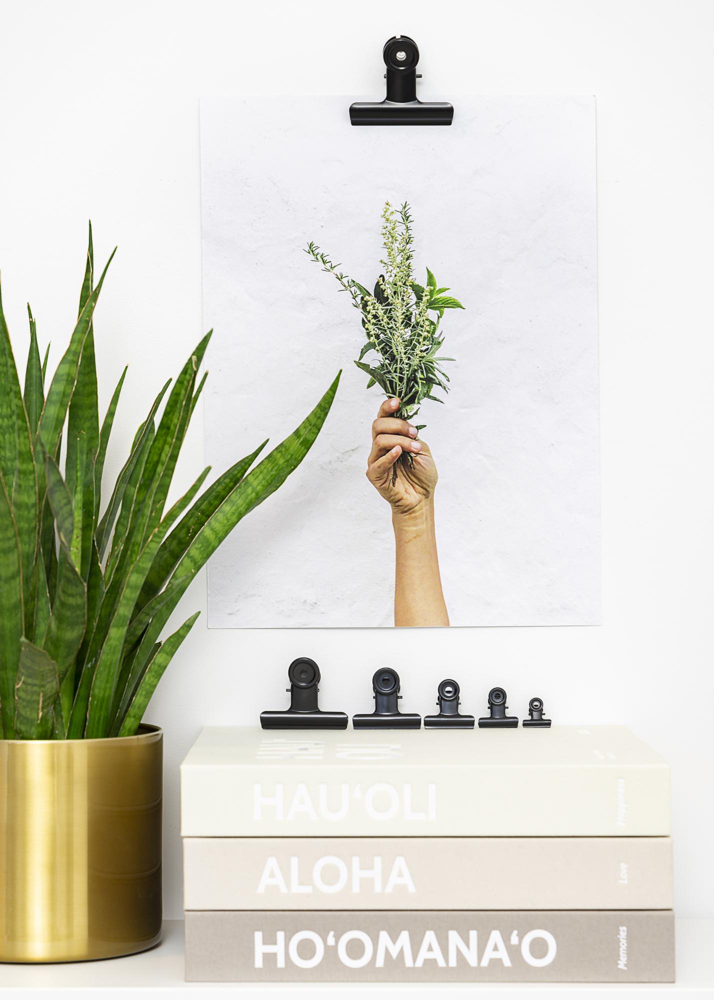 Ten czarny klips metalowy ma eleganckie matowe wykończenie i nadaje twoim plakatom i drukom szykowny i modny wygląd podczas zawieszania. Klips ma mocny uchwyt, który pozwala na przytrzymanie nawet najcieńszego papieru, a jednocześnie można go używać do motywów o nieco większej grubości. Jeśli masz duży plakat, który chcesz powiesić, możesz użyć dwóch klipsów do plakatów. Projekt klipsa metalowego jest prosty, a otwory w okrągłym wierzchołku klipsa ułatwiają i upraszczają powieszenie go na ścianie za pomocą małego gwoździa lub śruby.
