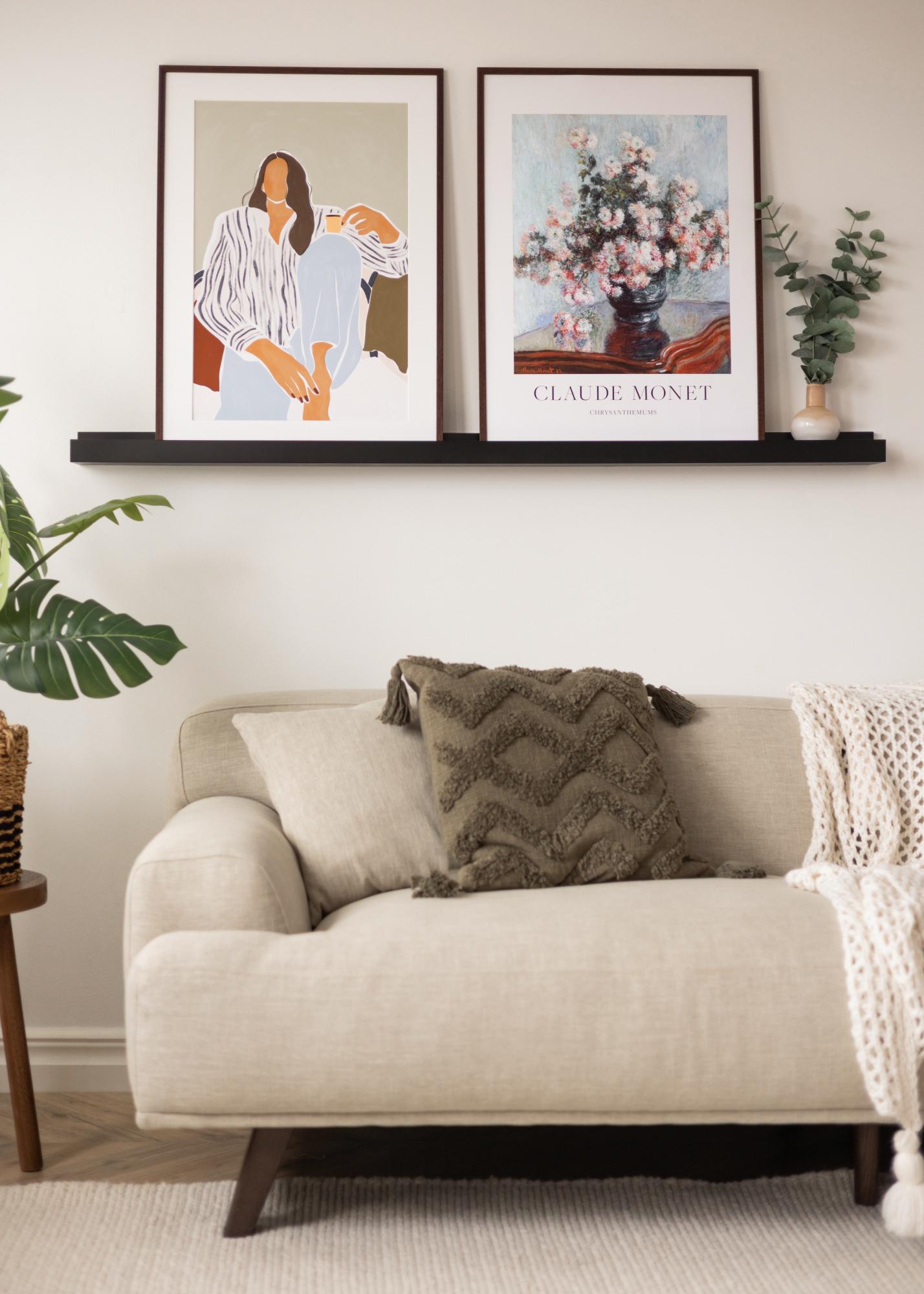 Pokaż i zmieniaj swoją sztukę na ścianie łatwo i stylowo z elegancką półką na obrazy! Ta półka na obrazy wykonana jest z MDF i jest modnie pomalowana na czarno z ładnym, półmatowym wykończeniem. Listwa na obrazy ma elegancki design z prostymi liniami i minimalistycznym uczuciem. Półka ma wyfrezowane wcięcie pośrodku, które działa jako wsparcie dla Twoich obrazów i nadaje im ładny kąt, kiedy opierają się o ścianę.