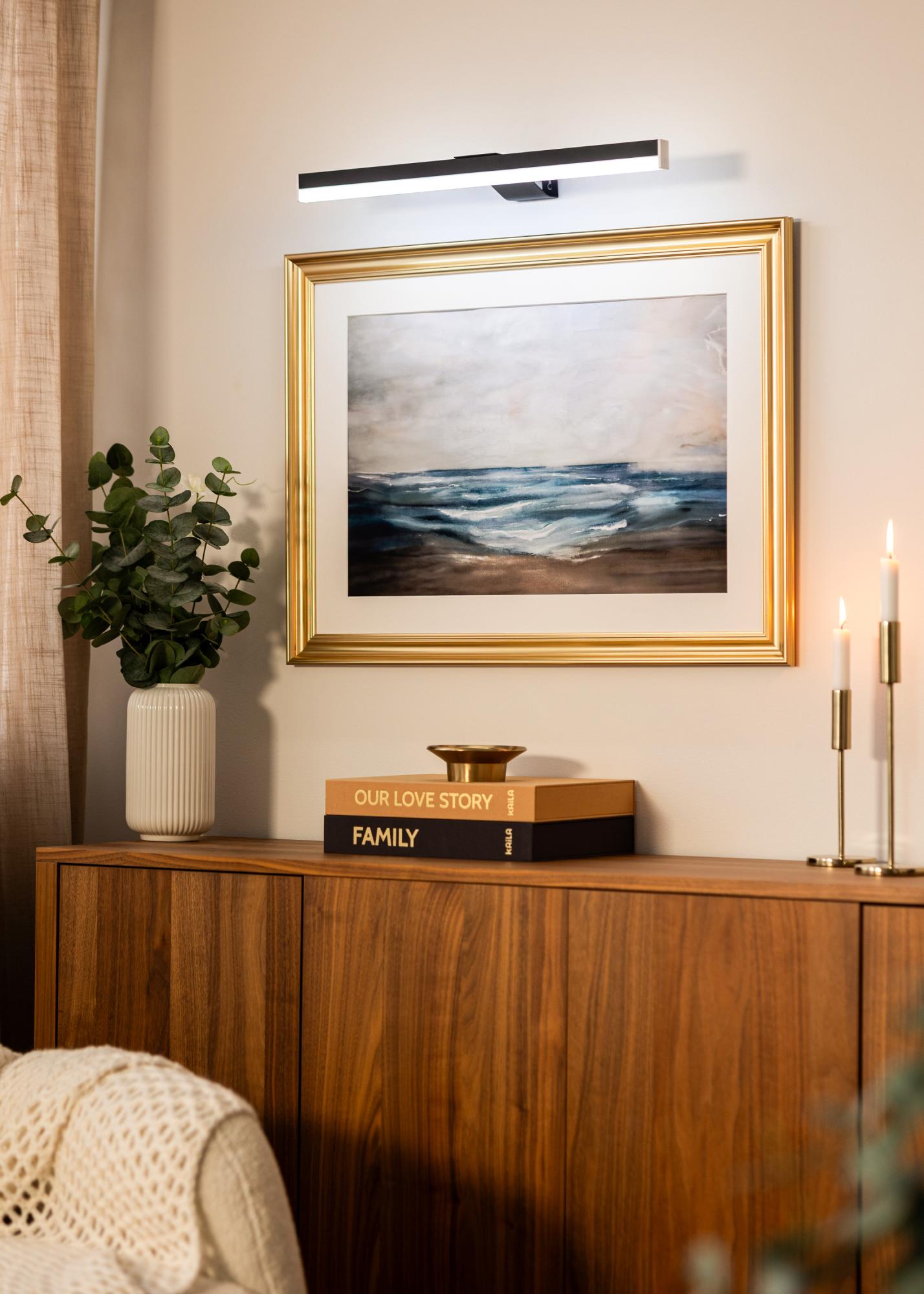 KAILA Radiate to eleganckie i zasilane bateryjnie oświetlenie obrazów w kolorze czarnym, zaprojektowane do podkreślania Twoich dzieł sztuki bez uciążliwych kabli. Bezprzewodowa konstrukcja sprawia, że montaż jest prosty i elastyczny, bez konieczności uwzględniania gniazdek elektrycznych. Eleganckie czarne wykończenie nadaje nowoczesny i wyrafinowany wygląd, while równomierne światło podkreśla szczegóły i kolory w efektowny sposób. Łatwa w instalacji i wygodna w użyciu – praktyczne i stylowe rozwiązanie dla Twojej sztuki ściennej.
