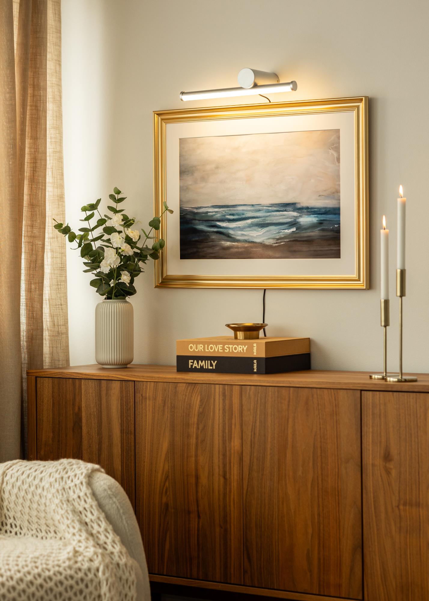 Przy temperaturze barwowej 3000K to oświetlenie zapewnia ciepłe, ale nadal naturalne światło, które podkreśla szczegóły Twoich dzieł sztuki bez bycia nachalnym. Zintegrowane źródło światła LED ma jasność 520 lumenów, co dostarcza wystarczającą ilość światła, aby pokryć obrazy do 80 cm szerokości, jednocześnie utrzymując niskie zużycie energii dzięki nowoczesnej technologii LED.