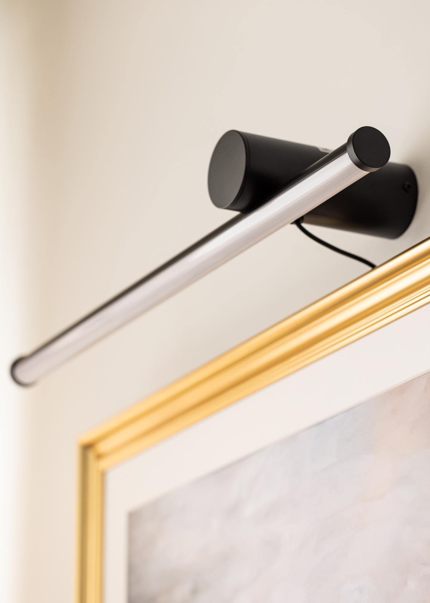 To oświetlenie obrazu w kolorze czarnym jest eleganckim i nowoczesnym wyborem do oświetlania twoich obrazów w stylowy sposób. O głębokości 15,3 cm i długości 60 cm, pasuje do dzieł sztuki o maksymalnej szerokości 100 cm. Czarna powłoka nadaje wyrafinowanego i dyskretnego charakteru, który wtapia się zarówno w nowoczesne, jak i klasyczne wnętrza, co czyni ją wszechstronną opcją dla każdego typu domów.