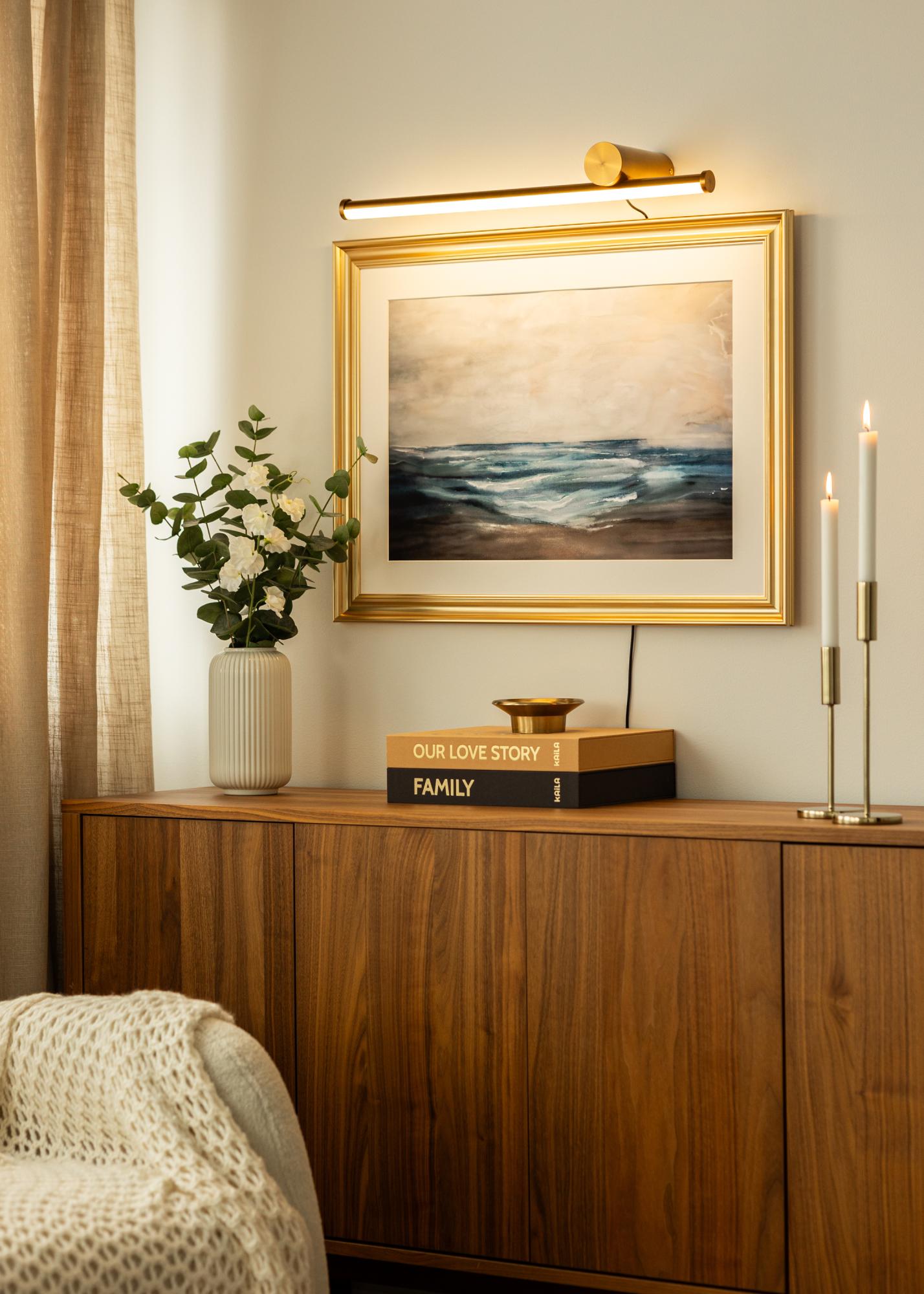 Źródło światła składa się z oświetlenia LED, które daje ciepłe białe światło o temperaturze barwowej 3000K. Oznacza to, że światło jest przyjemne i tworzy zapraszającą atmosferę, nie będąc zbyt intensywne. Jasność wynosi 780 lumenów, co zapewnia wystarczająco silne światło, aby podkreślić twoje obrazy, nie przytłaczając przestrzeni. Światło jest równomiernie rozprowadzone na powierzchni, co sprawia, że wszystkie detale dzieła sztuki są widoczne w naturalny sposób.
