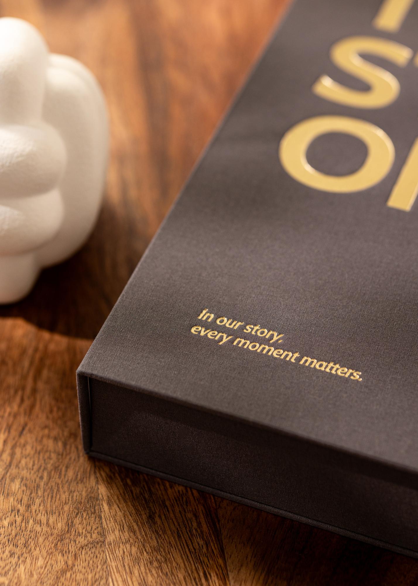 The Story of Us jest idealnym albumem na zdjęcia do zbierania wspomnień z waszego ślubu i historii miłosnej. Dzięki eleganckiemu kremowemu designowi i formatowi na stolik kawowy staje się piękną częścią wystroju wnętrza, jednocześnie zachowując wasze najważniejsze chwile. Album ma 60 czarnych, bezkwasowych stron, na których możecie przyczepiać swoje zdjęcia i tworzyć ponadczasową opowieść o waszej miłości.