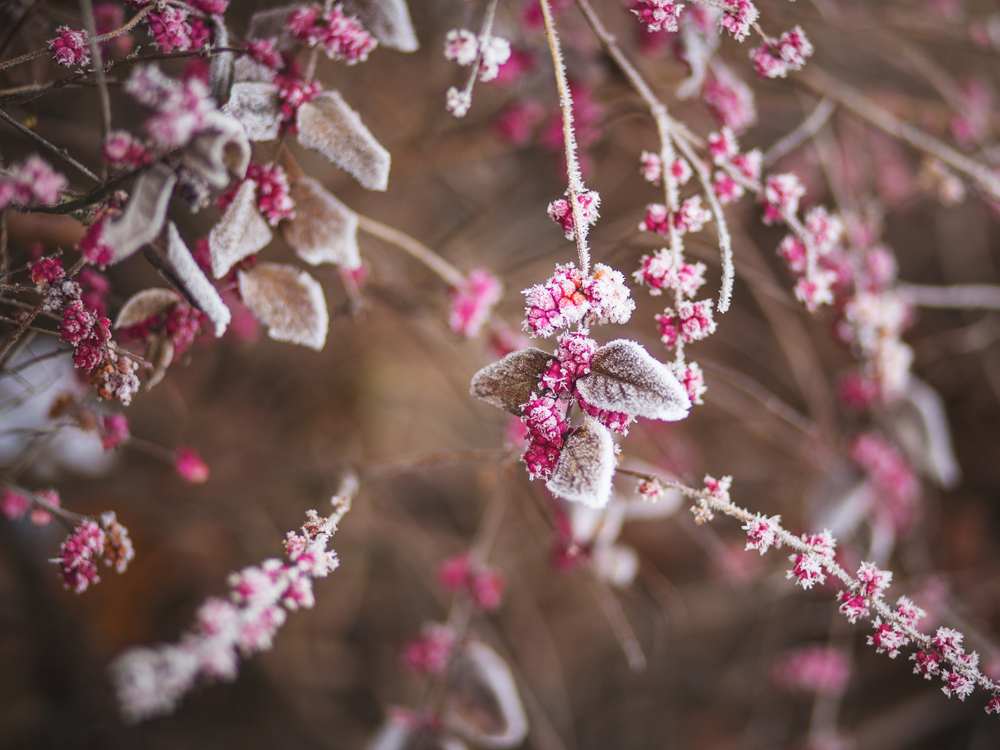 Sztuka fotograficzna z bliska na mrożone różowe jagody z krótką głębią ostrości. Druk z jagodami w kolorze różowym i tłem w czekoladowych tonach tworzy ciepłe i przytulne wrażenie. W większym rozmiarze z elegancką ramą obraz staje się punktem centralnym w salonie, a mniejszy wariant można umieścić w kolażu z innymi plakatami w tych samych odcieniach kolorów.