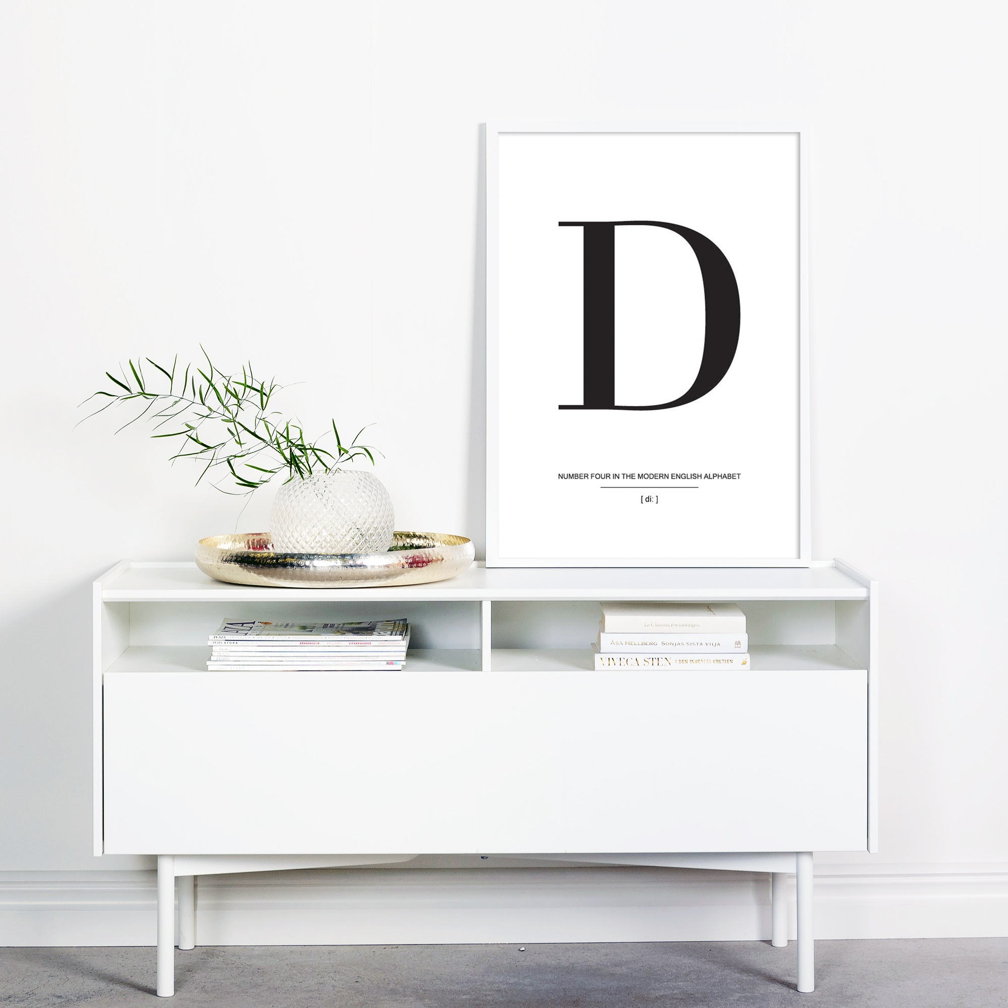 W prostocie tkwi piękno, co udowadnia naprawdę ten stylowy plakat z literą D w kolorze czarnym na białym tle. Plakat posiada elegancką typografię i powinien być uzupełniony o inne plakaty z literami z tej samej serii, aby stworzyć modną i piękną ścianę z obrazami. Wybierz swoje ulubione plakaty z literami i wybierz spośród naszego szerokiego wyboru wysokiej jakości ram, a potem pozwól, by wyobraźnia płynęła po ścianach w domu.