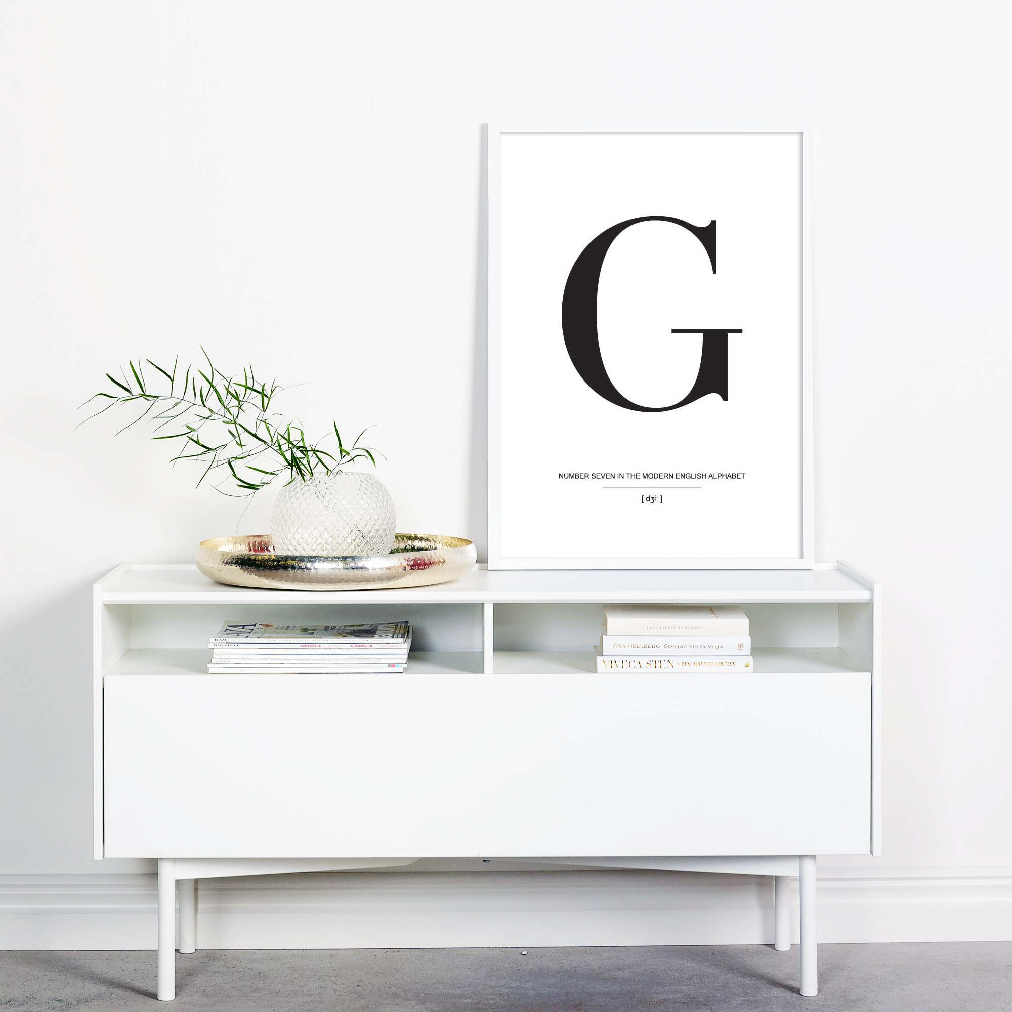 W prostocie tkwi piękno, co naprawdę udowadnia ten stylowy plakat z literą G w czerni na białym tle. Plakat ma elegancką typografię i powinien być uzupełniony innymi plakatami z literami z tej samej serii, aby stworzyć modną i piękną ścianę z obrazami. Wybierz swoje ulubione plakaty z literami i wybierz spośród naszego szerokiego asortymentu wysokiej jakości ram, a następnie pozwól, aby wyobraźnia popłynęła po domowych ścianach.