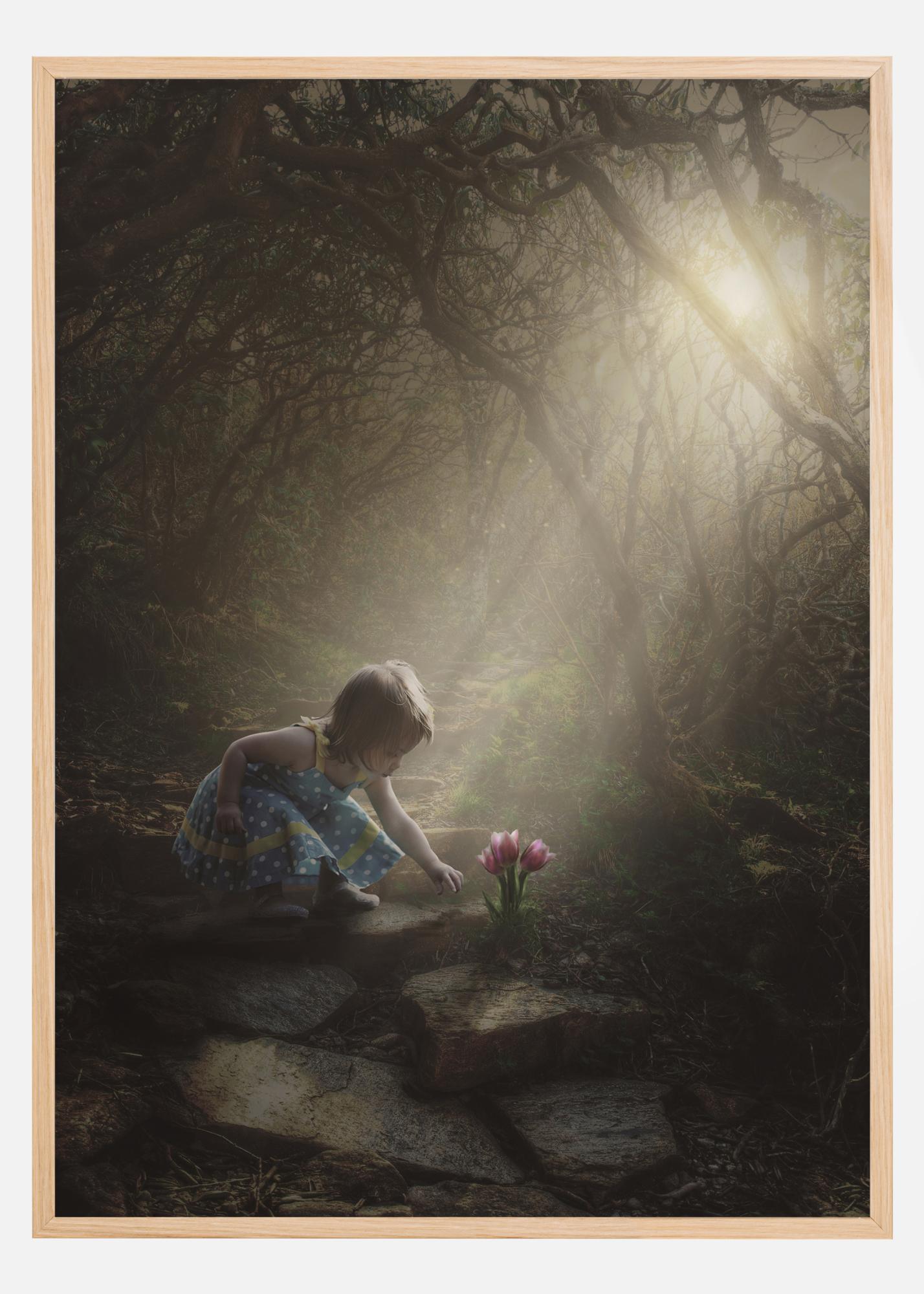 Piękna grafika, która przenosi cię do bajkowego świata ze swoim magicznym światłem, zaczarowanym lasem i małą dziewczynką na eksplorujących przygodach. Plakaty o marzycielskim klimacie, które im większe, tym lepsze.