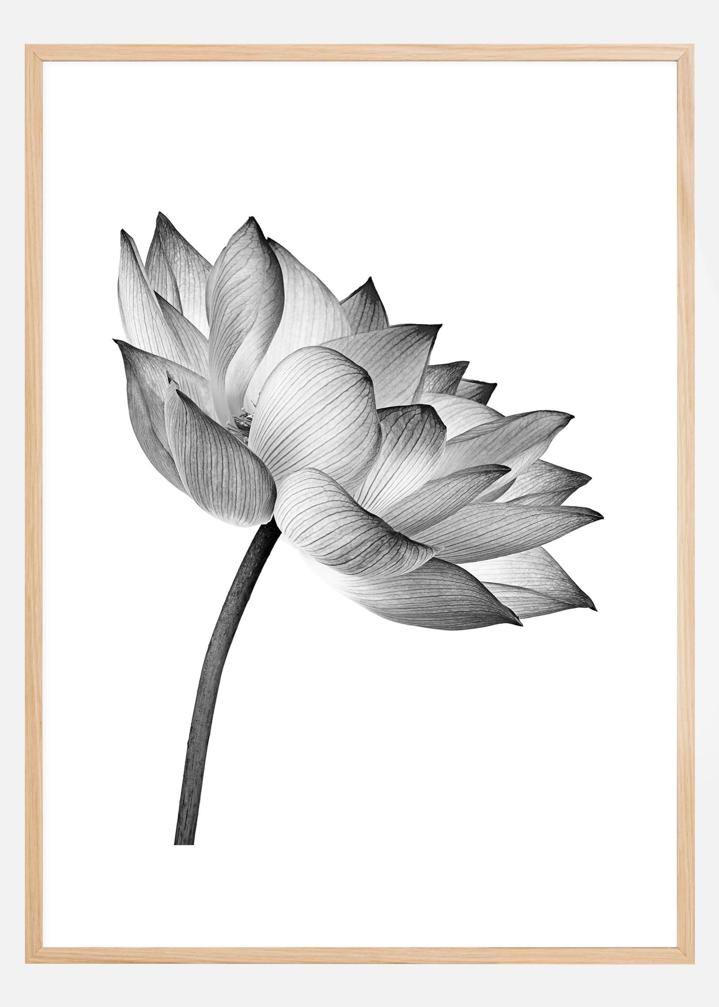 Grafika plakatowa w czarno-białych kolorach z rozkwitającym kwiatem lotosu na białym tle. Elegancki i minimalistyczny plakat, który łatwo połączyć z innymi ulubionymi elementami na większej ścianie galerii.