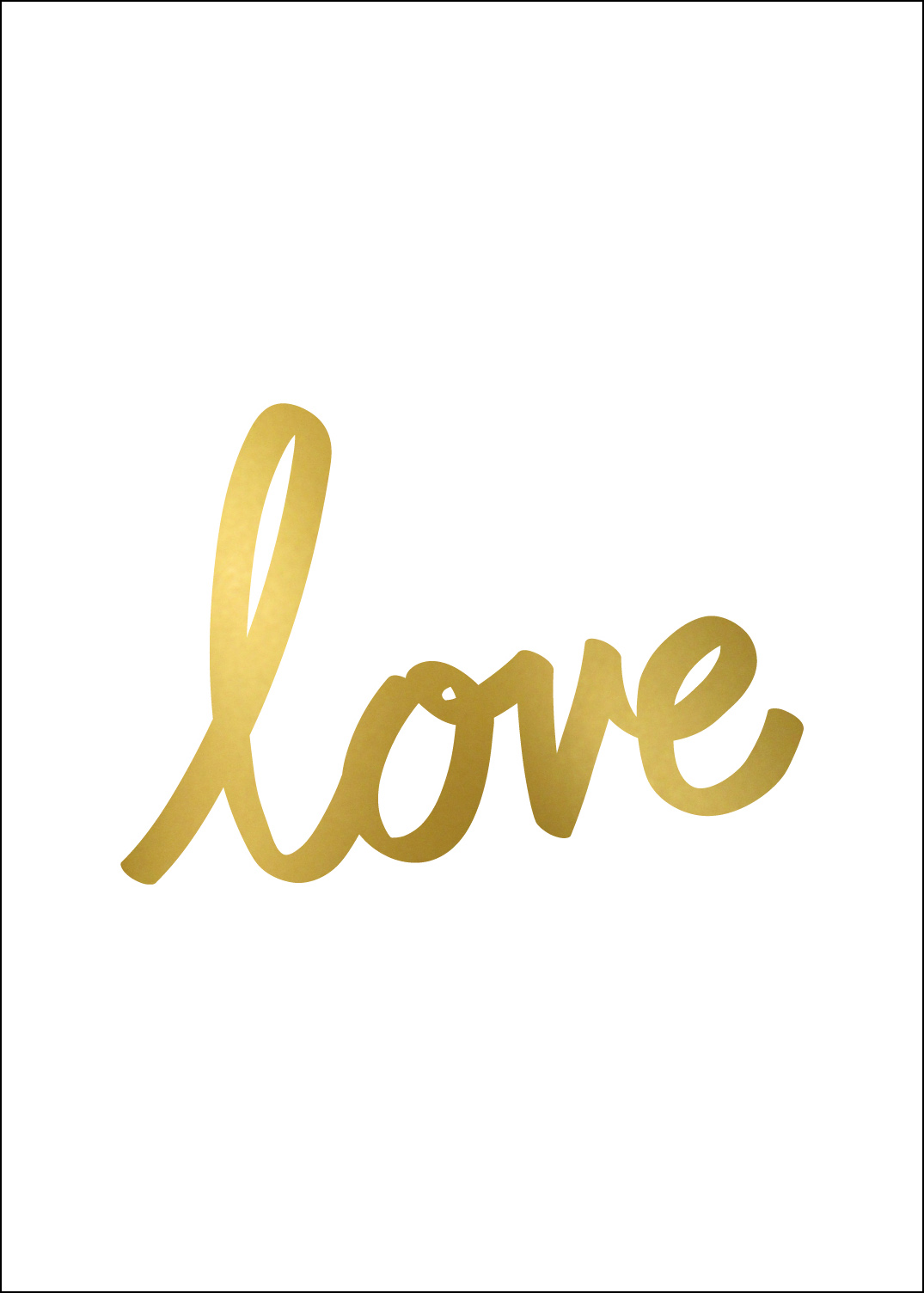 Mniej znaczy więcej, gdy patrzy się na ten elegancki plakat w bieli i złocie. Plakat jest bardzo stylowy z białym tłem i nadrukiem z tekstem „Love” napisanym ozdobnymi, miękkimi literami. Uzupełnij jasną, złotą ramą, aby jeszcze bardziej podkreślić to złocenie. Dostępny w różnych rozmiarach i przedziałach cenowych.