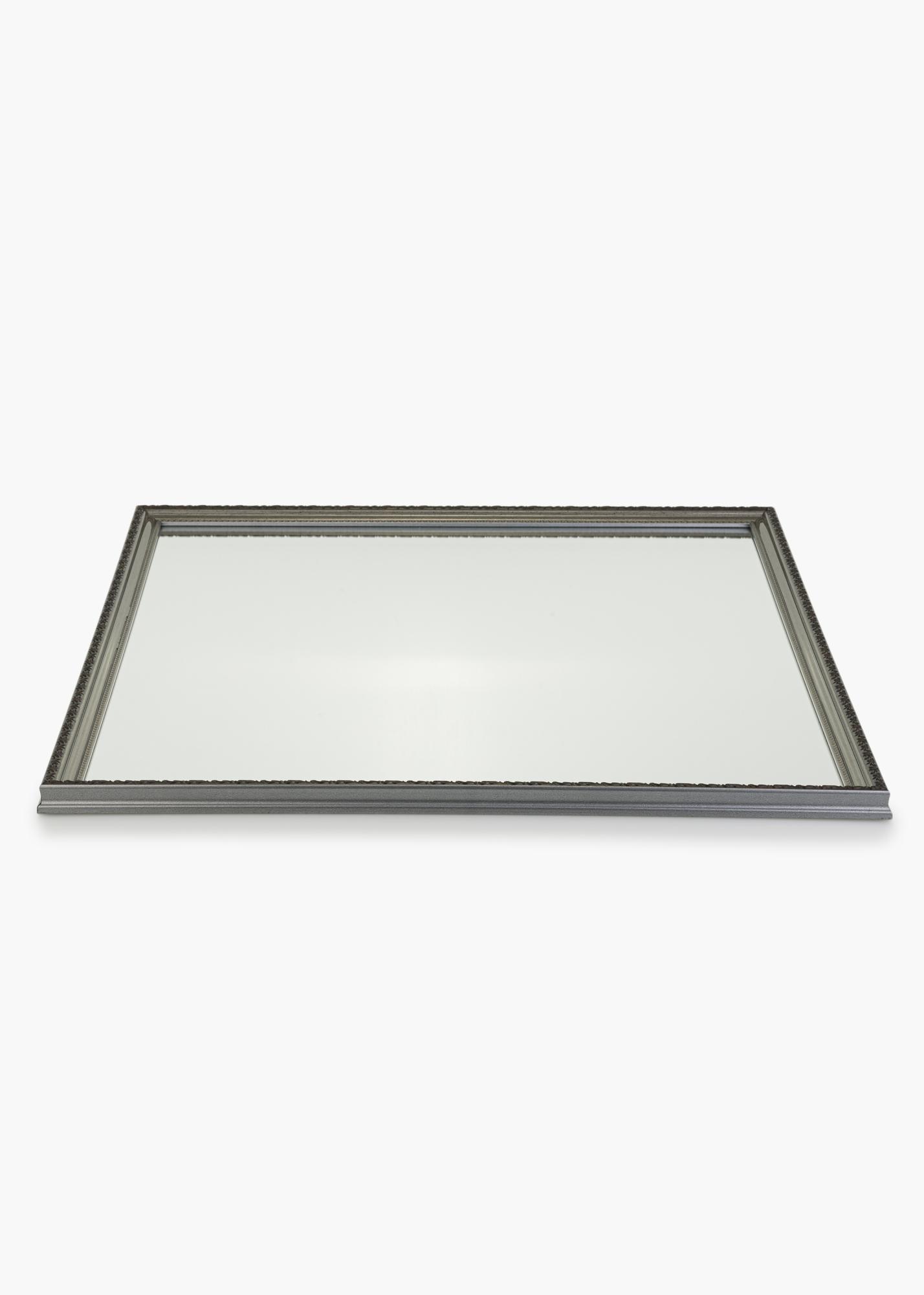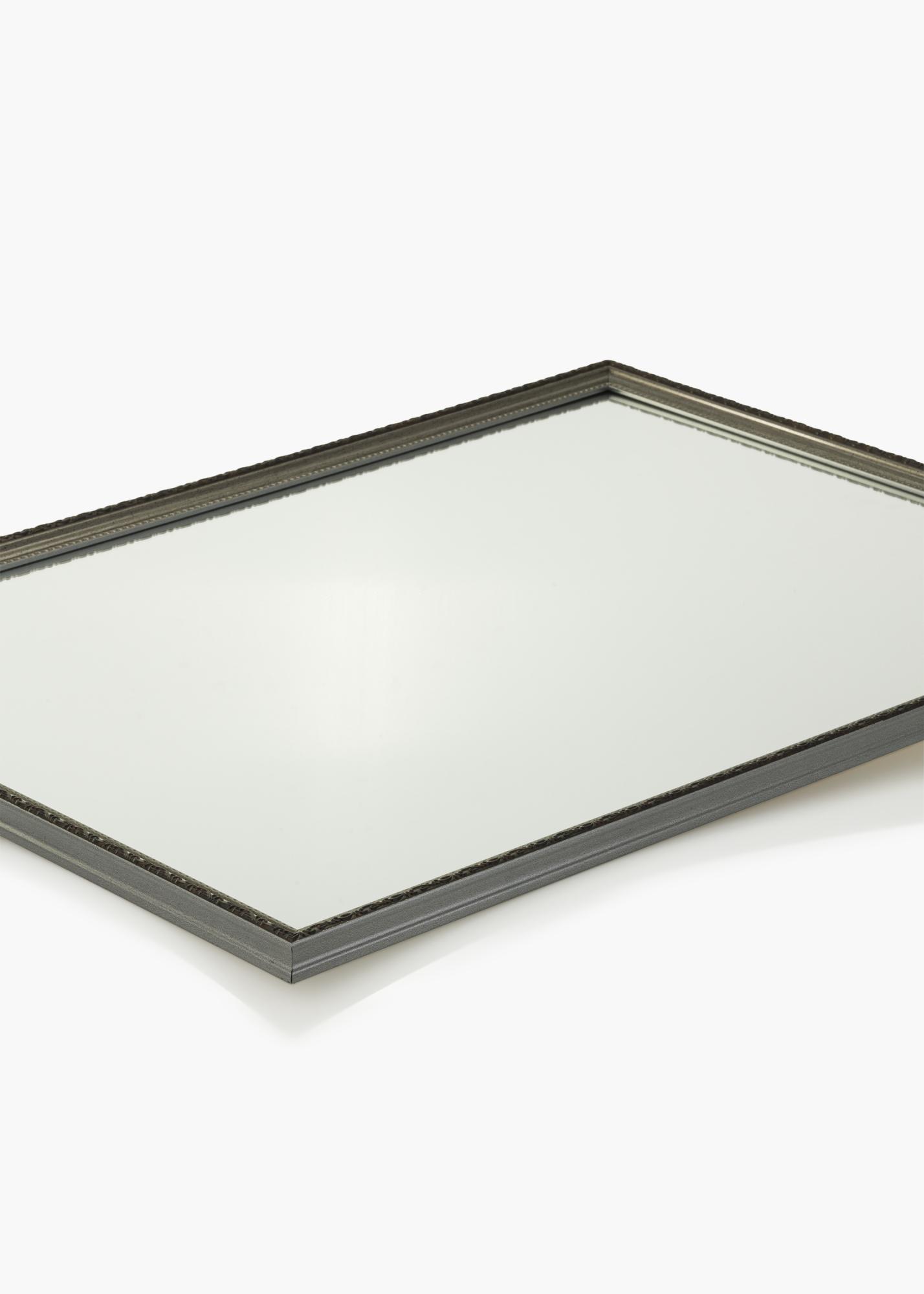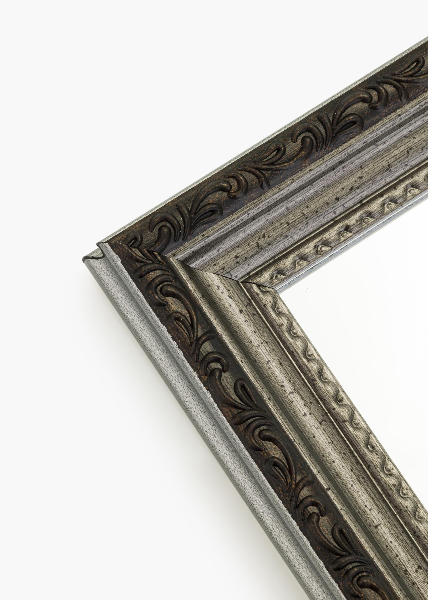 To jest lustro ścienne w eleganckim odcieniu srebra, zaakcentowane czarną krawędzią. Elegancki odcień lustra doskonale łączy się z ozdobnym profilem, którego wzór pomaga stworzyć bardzo wyrafinowaną całość. Rama ma szerokość 25 mm i jest wykonana z kompozytu.
