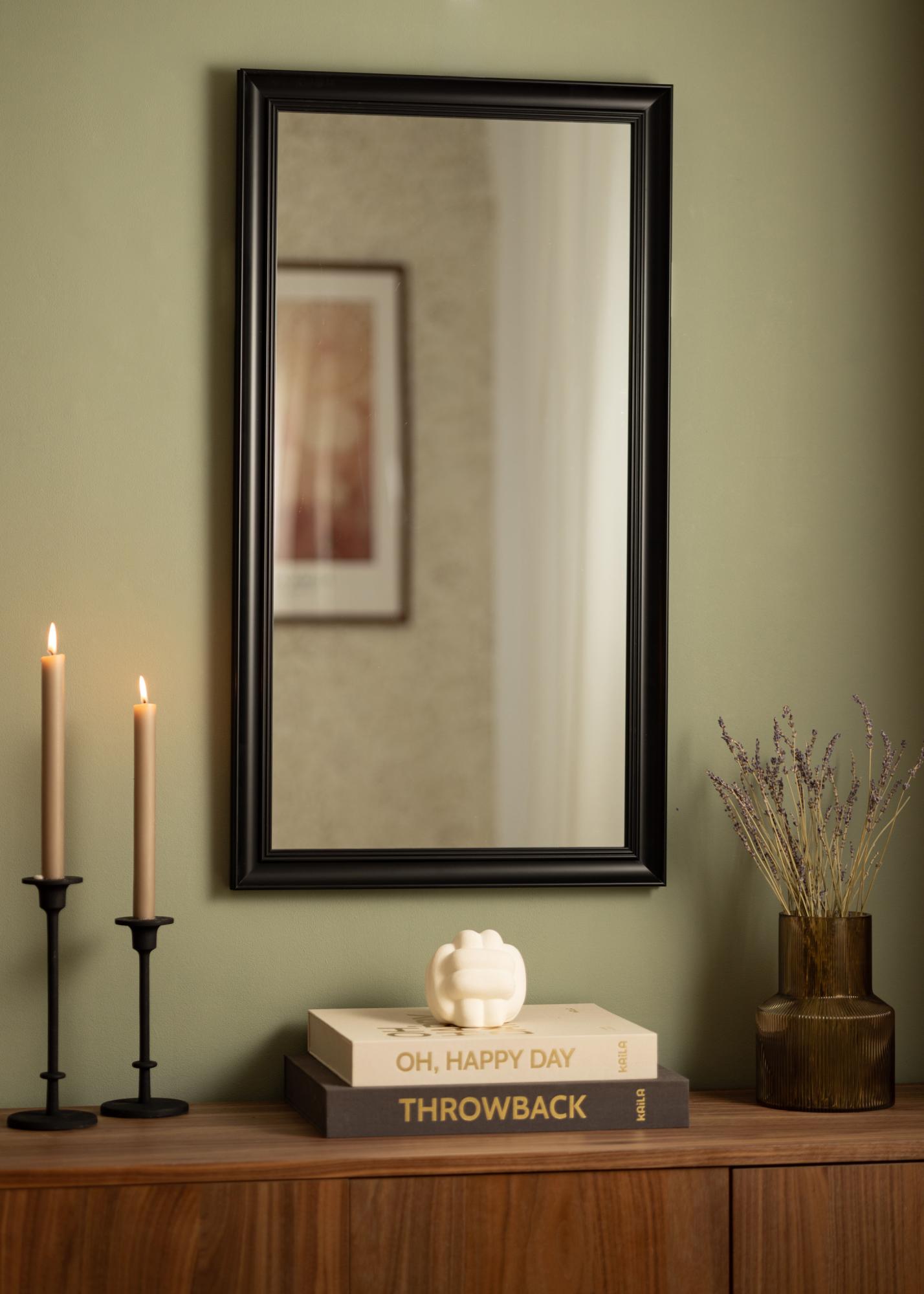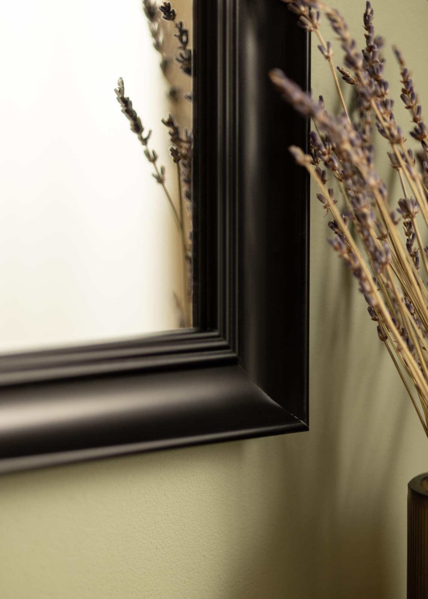 Alice Czarna to lustro, którego rama ma klasyczny, surowy design z prostymi liniami, stworzony, aby skupić się na motywie.