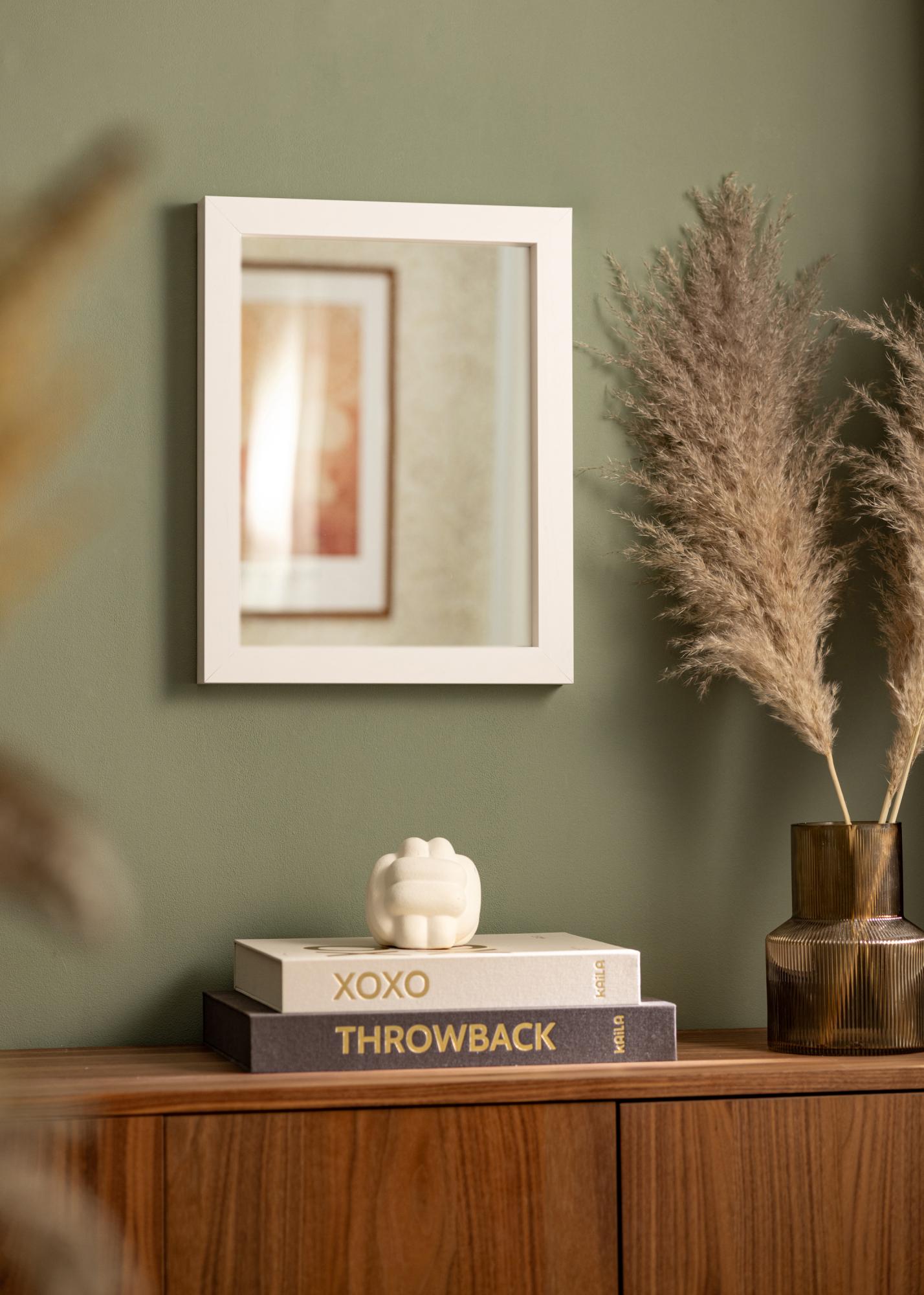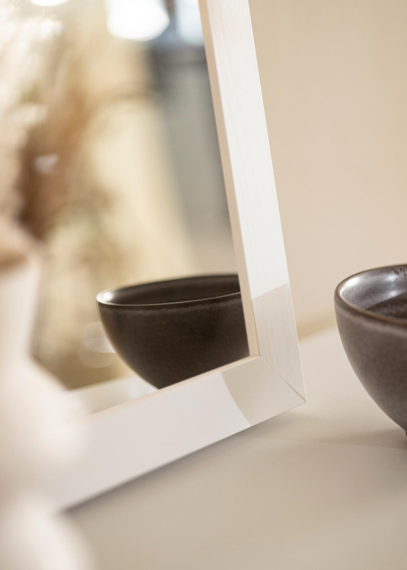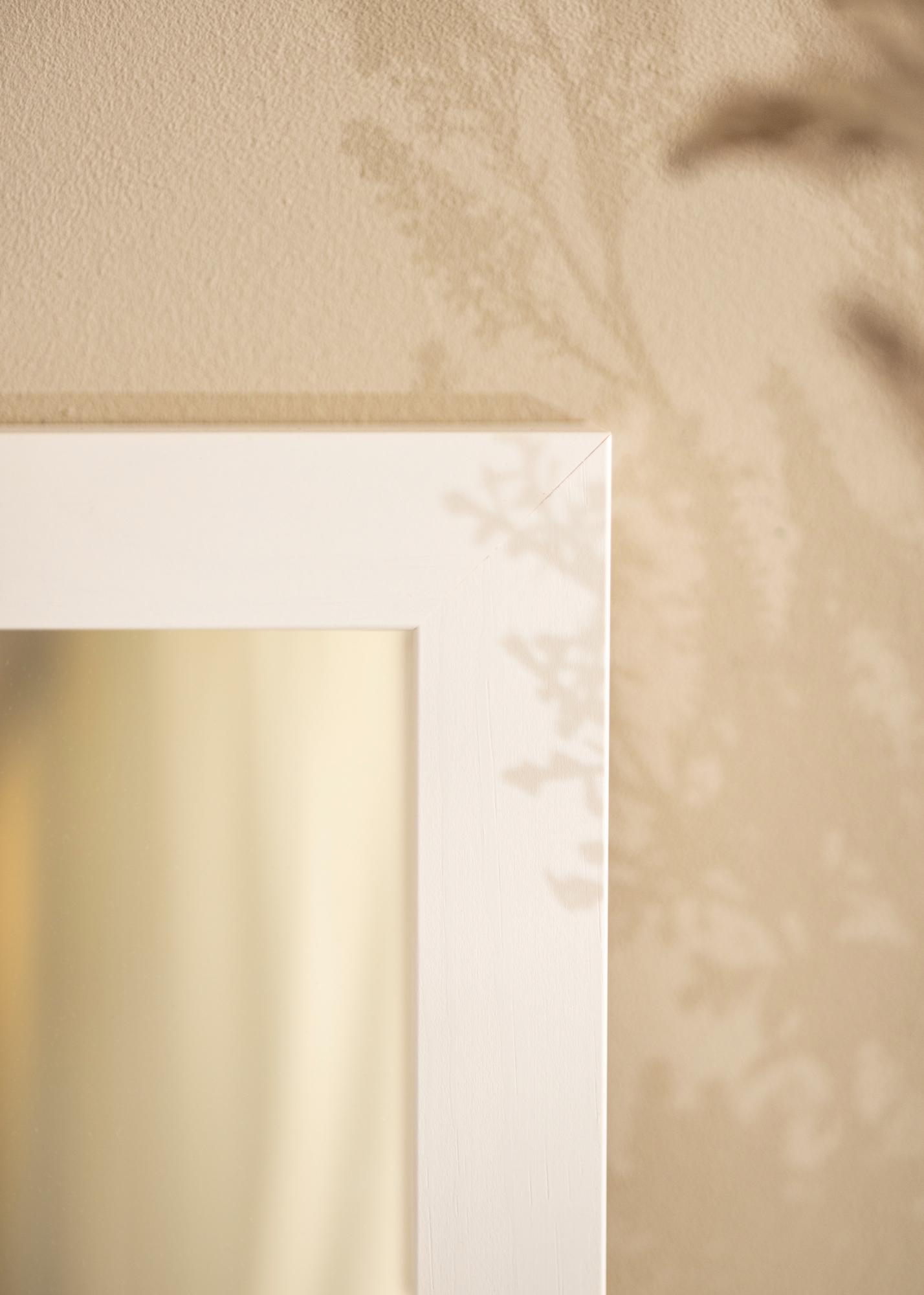 Rama z drewna świerkowego produkowana w Finlandii, pomalowana na biało bezpośrednio na drewnie, aby uzyskać bardziej autentyczne wrażenie drewna. "Boxholm Biały" ma głębokość 43 mm, co sprawia, że lustro odstaje trochę od ściany, tworząc efektowny efekt 3D.