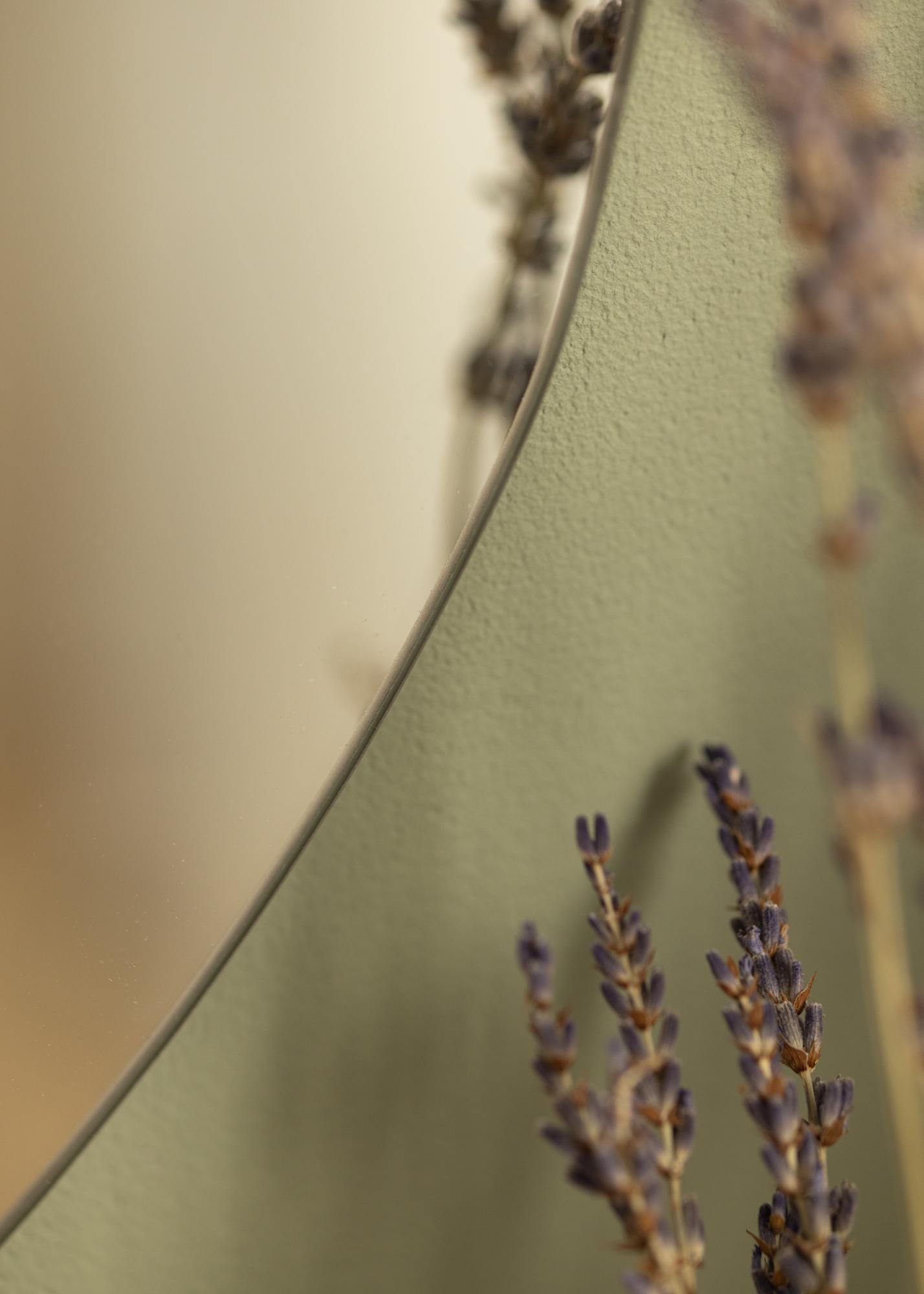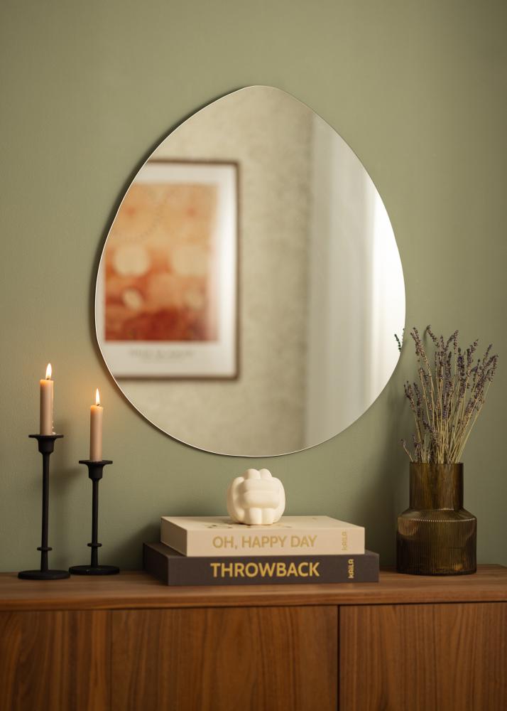 Lustro ma zaokrąglony, jajkowaty kontur z płaskim dnem, co nadaje mu miękką i nowoczesną estetykę. Jego unikalny kształt sprawia, że wyróżnia się z tłumu i staje się interesującym tematem do rozmów. Jest nie tylko lustrem, ale także dziełem sztuki upiększającym Twój dom.