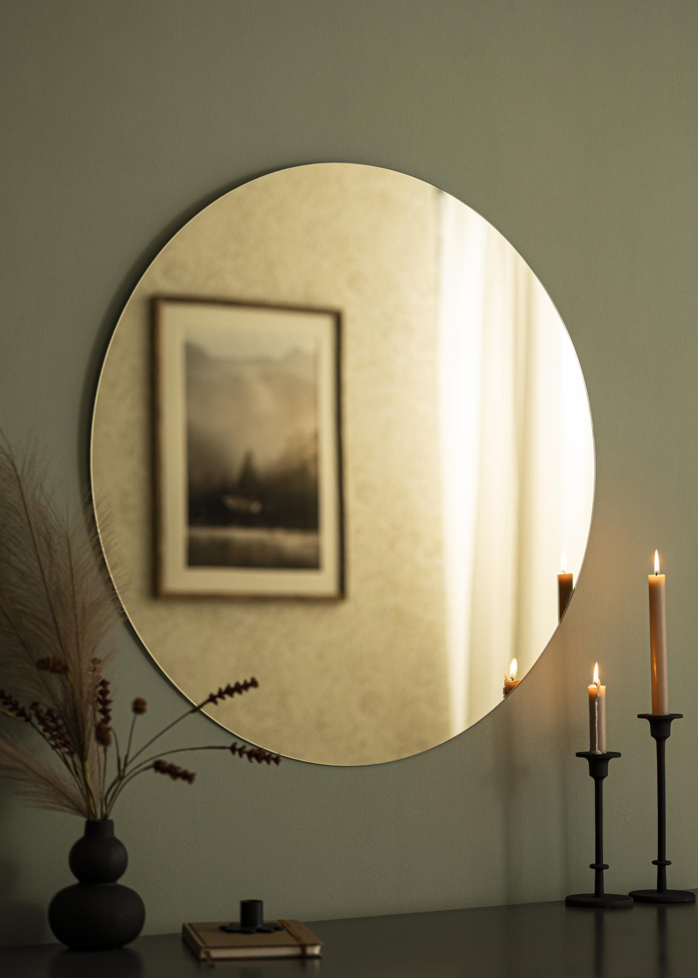 Odcień szampana to kolor luksusu, więc jeśli szukasz ekskluzywnego lustra, to jest właściwy wybór. To okrągłe lustro ścienne ma cienkie szkło lustrzane i elegancki design bez ramki. Lustro ma średnicę 80 cm.