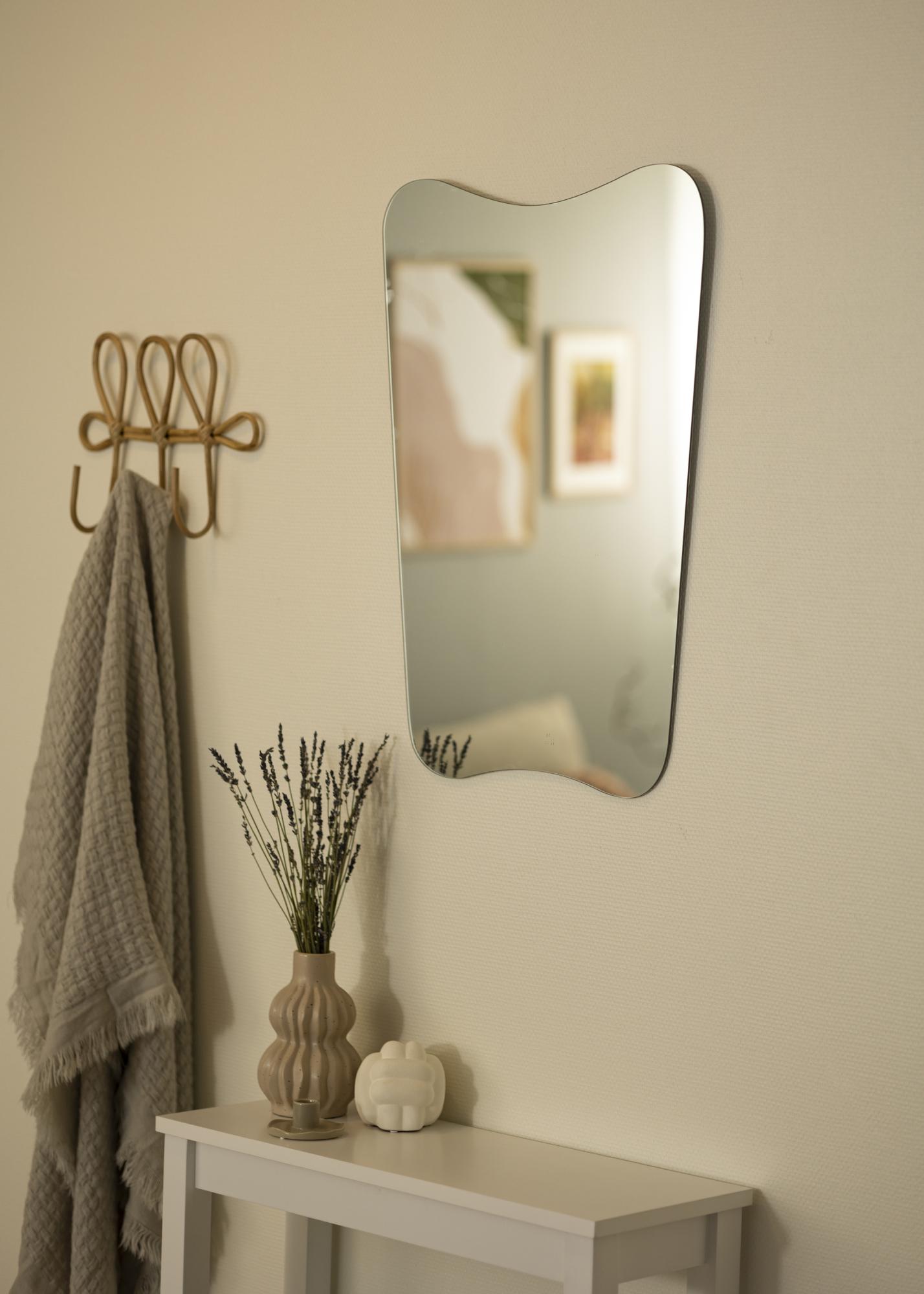 Odkryj eleganckie i nowoczesne lustro, które zostało zaprojektowane, aby uzupełnić każde pomieszczenie swoim unikalnym urokiem. To wyjątkowo ukształtowane lustro ma delikatne, płynne krzywizny, które nadają nowoczesny akcent klasycznemu prostokątnemu kształtowi, a brak widocznej ramy tworzy bezszwowy i elegancki wygląd. Dzięki swoim hojnym wymiarom 50x70 cm staje się praktycznym i dekoracyjnym elementem w Twoim domu.