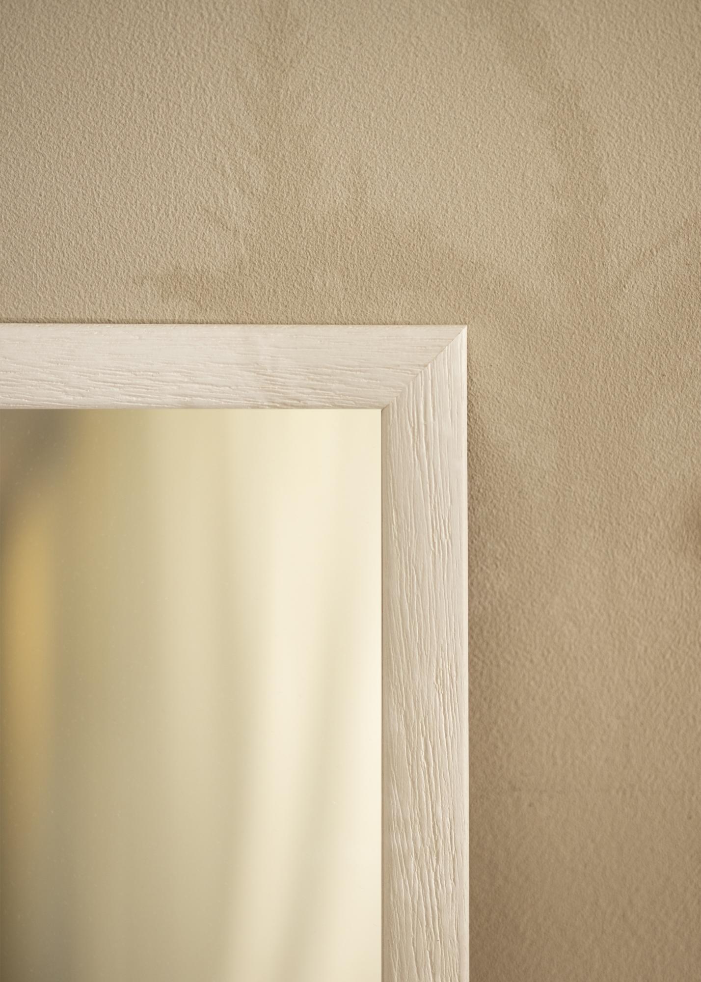 Lustro Cornwall Białe to lustro robione na zamówienie, które jest produkowane przez nas, aby spełnić Twoje potrzeby. Dzięki eleganckiej białej barwie i subtelnym odcieniom, to lustro oferuje miękkie i naturalne wrażenie, które wtapia się w większość otoczeń. Ciepły kościany biały odcień tworzy przyjemną atmosferę w pomieszczeniu, podczas gdy wyraźna struktura drewna z widocznymi słojami dodaje rustykalnego charakteru.