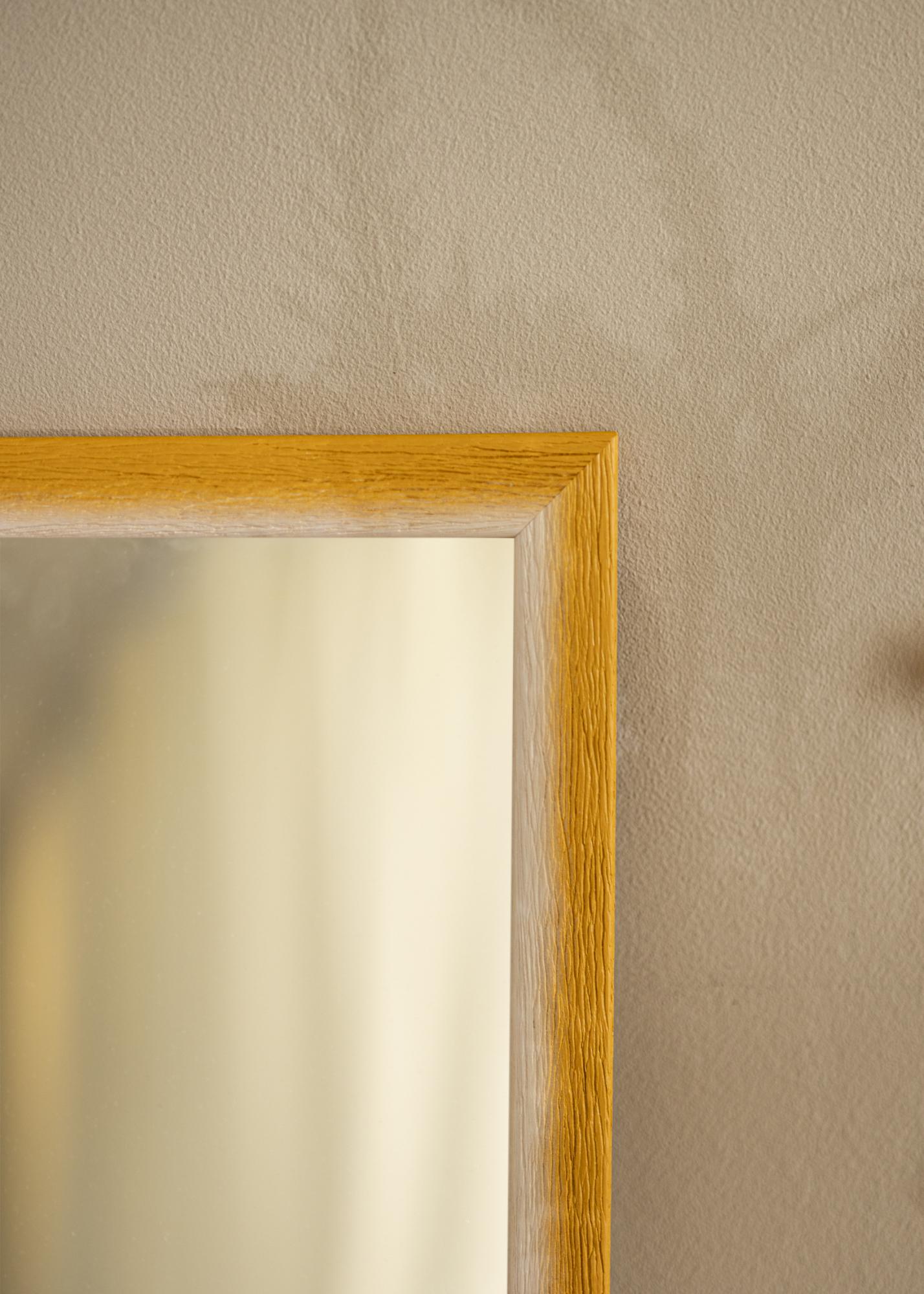 To lustro wyróżnia się harmonijnym przejściem kolorów od jasnego, naturalnego odcienia bieli do ciepłego ochrowo-żółtego odcienia. To subtelne przejście tworzy delikatny, malowany wyraz, który nadaje pomieszczeniu żywej głębi. Powierzchnia ramy jest wytłaczana z wyraźną strukturą drewna z głębokimi słojami, co nadaje jej dotykowy i naturalny wygląd. Dzięki temu lustro nie tylko jest funkcjonalne, ale też stanowi dekoracyjny element w Twoim domu.