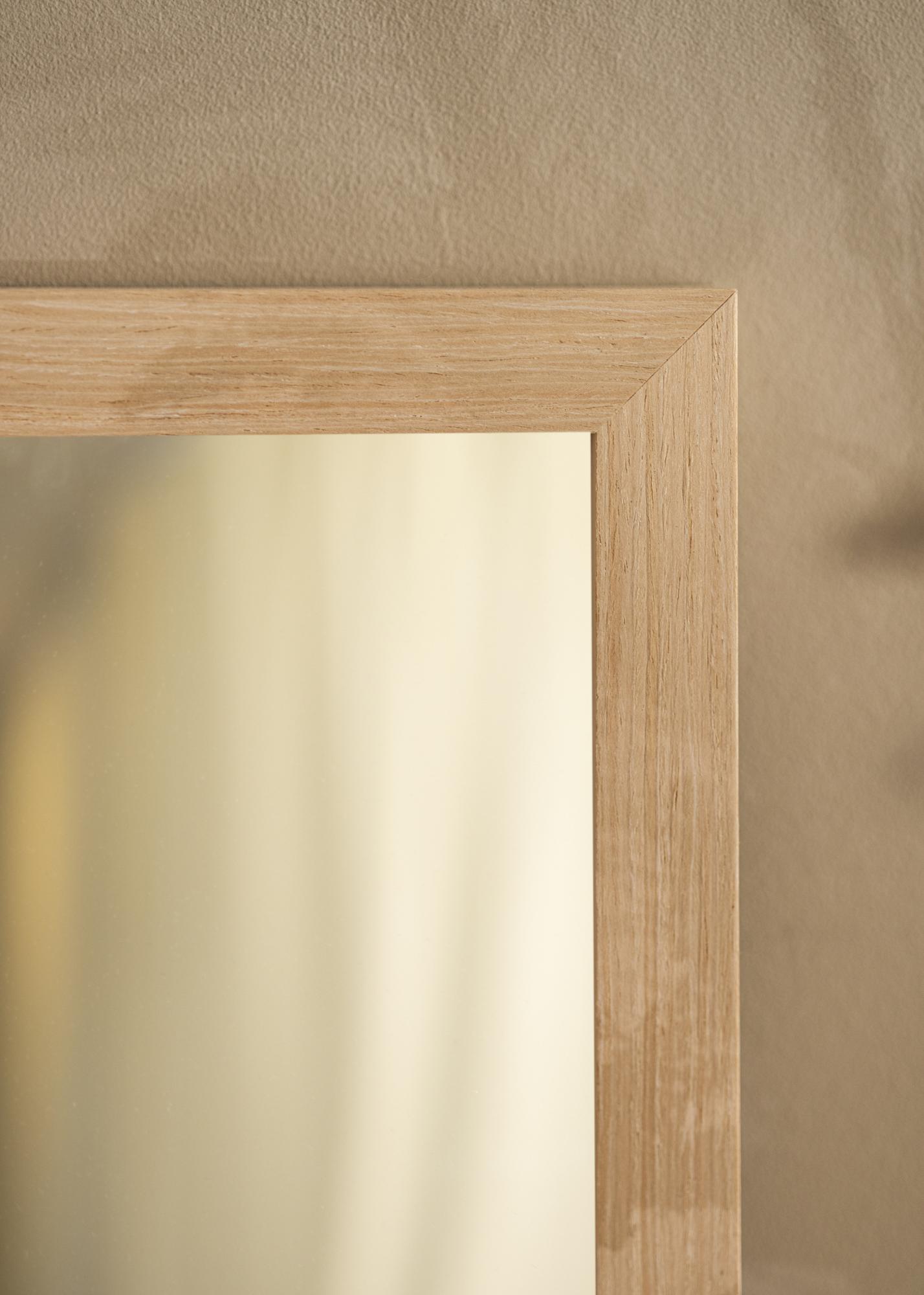 Rama lustra ma szerokość 28 mm i głębokość 33 mm, co daje stabilne i mocne wrażenie, nie dominując nad pomieszczeniem. Wykonane z sosny, łączy trwałość z lekkością, co sprawia, że jest łatwe do obsługi i montażu. Satynowe matowe wykończenie podkreśla naturalną strukturę drewna, nie odbijając światła, co tworzy przyjemną atmosferę w pokoju.