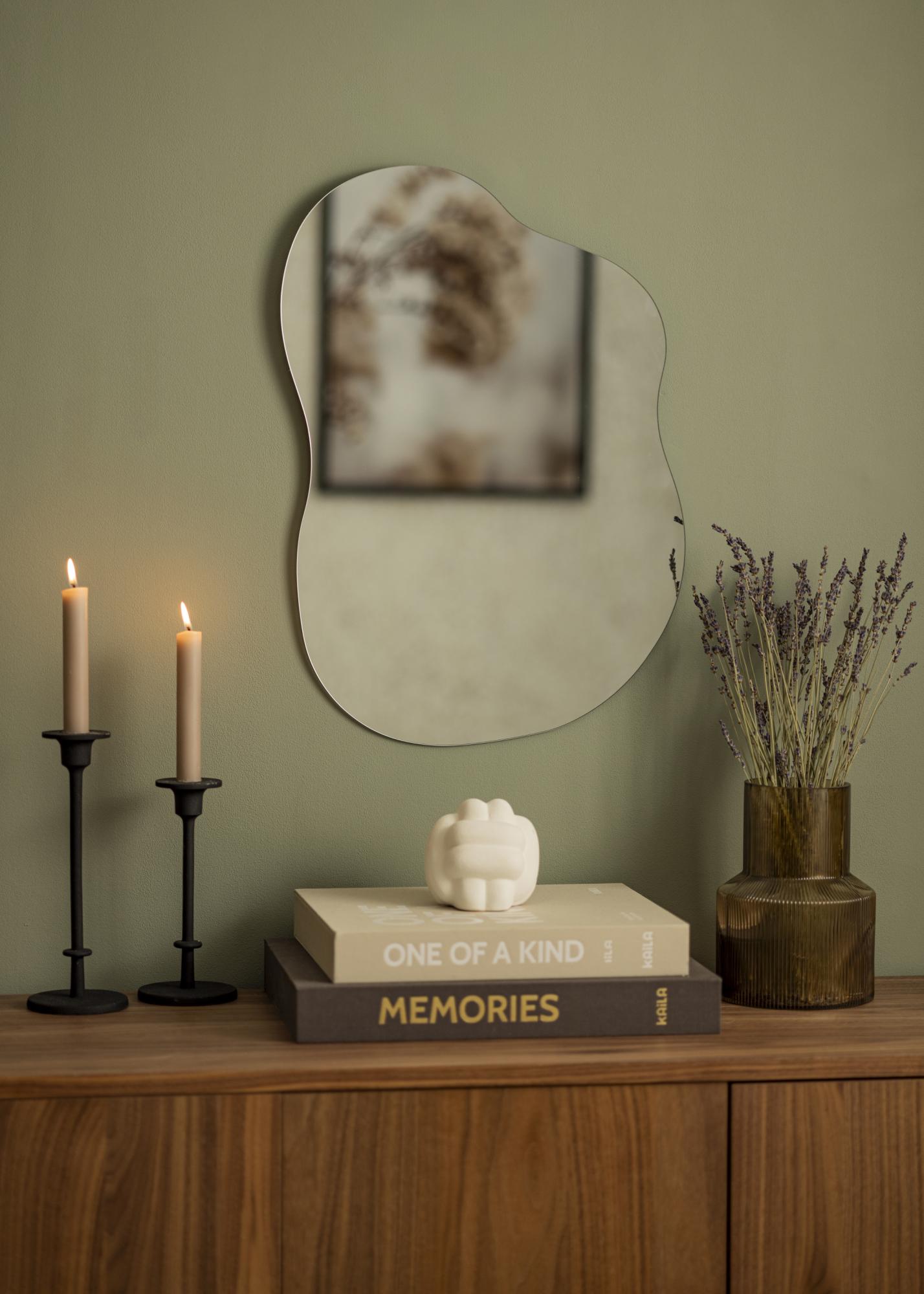 Curvy Cloud to eleganckie lustro ścienne o unikalnym designie z asymetrycznym kształtem. Krawędzie tworzą miękki falisty wzór, który – wraz z brakiem ramy lustra – daje minimalistyczne wrażenie. Nawet cienkie szkło lustrzane o grubości 4 mm przyczynia się do tego odczucia. Lustro można przymocować do ściany za pomocą uchwytów z tyłu.