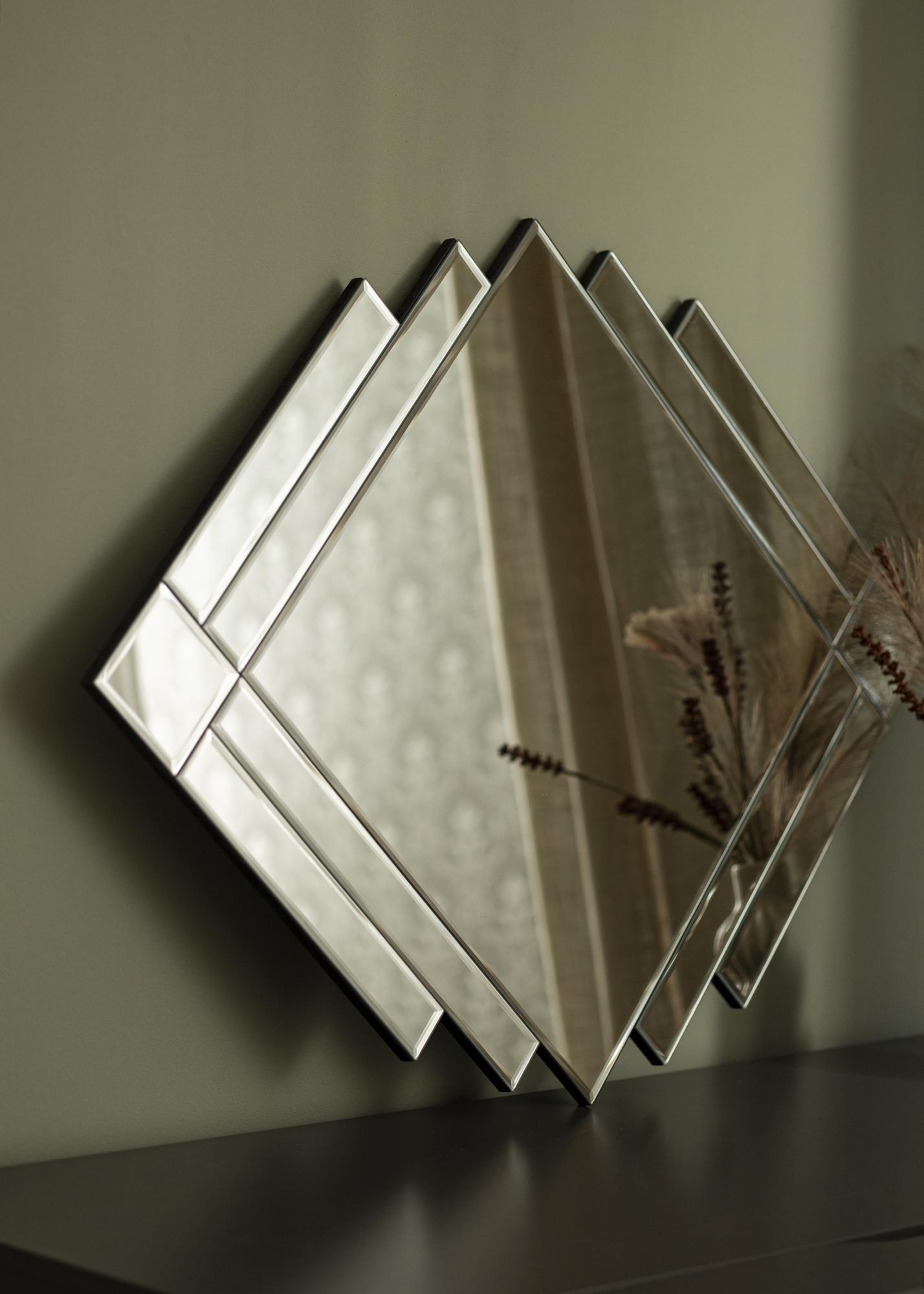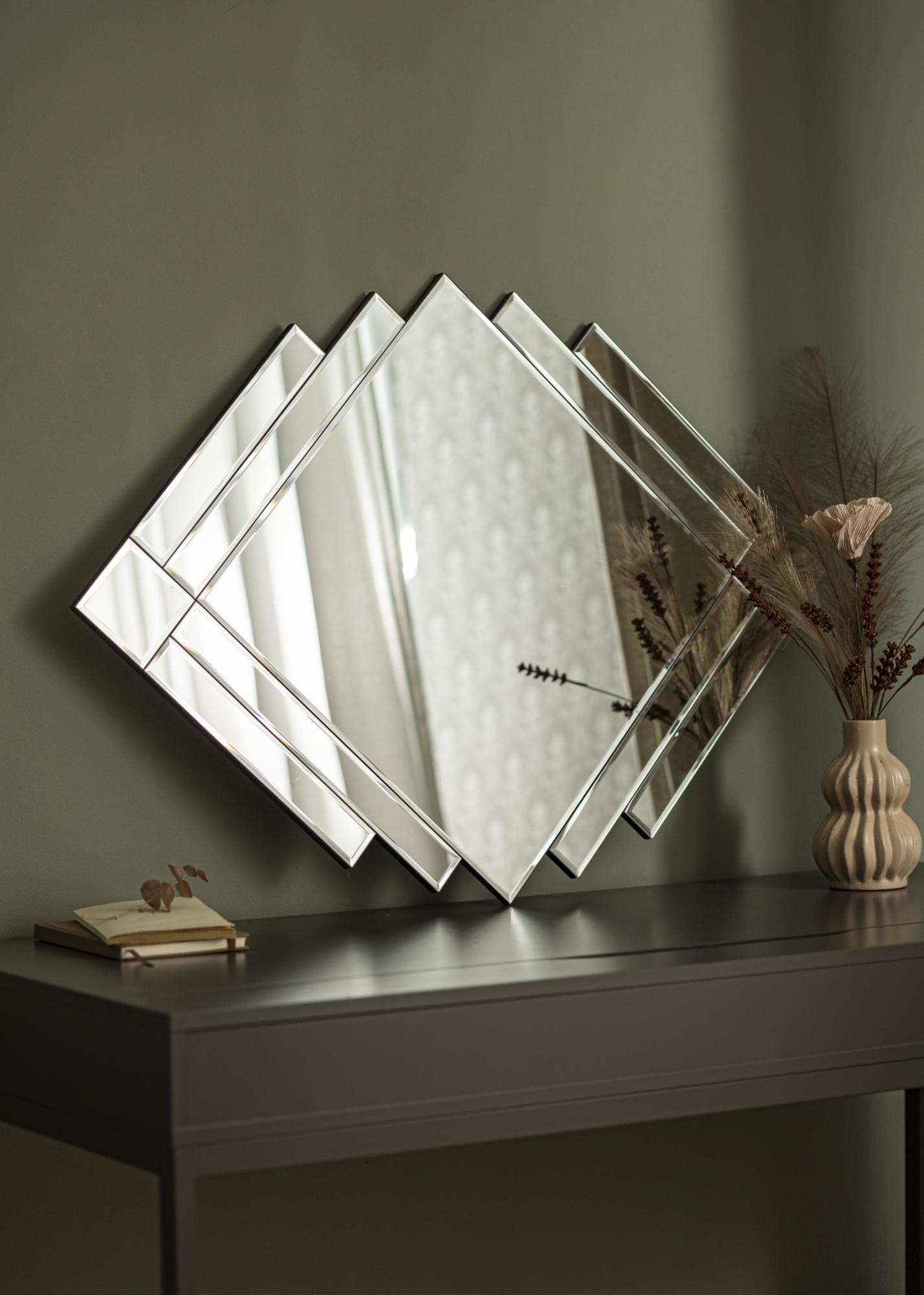 Odkryj lustro, które przełamuje normy i dodaje artystyczny akcent do Twojego domu. Dzięki wielofacetowym sekcjom lustrzanym, to lustro oferuje niezwykły i rzucający się w oczy kształt, który z pewnością stanie się tematem rozmów. Jego rozmiar 71x99 cm sprawia, że jest to wspaniały punkt centralny, niezależnie od miejsca, w którym jest umieszczone.