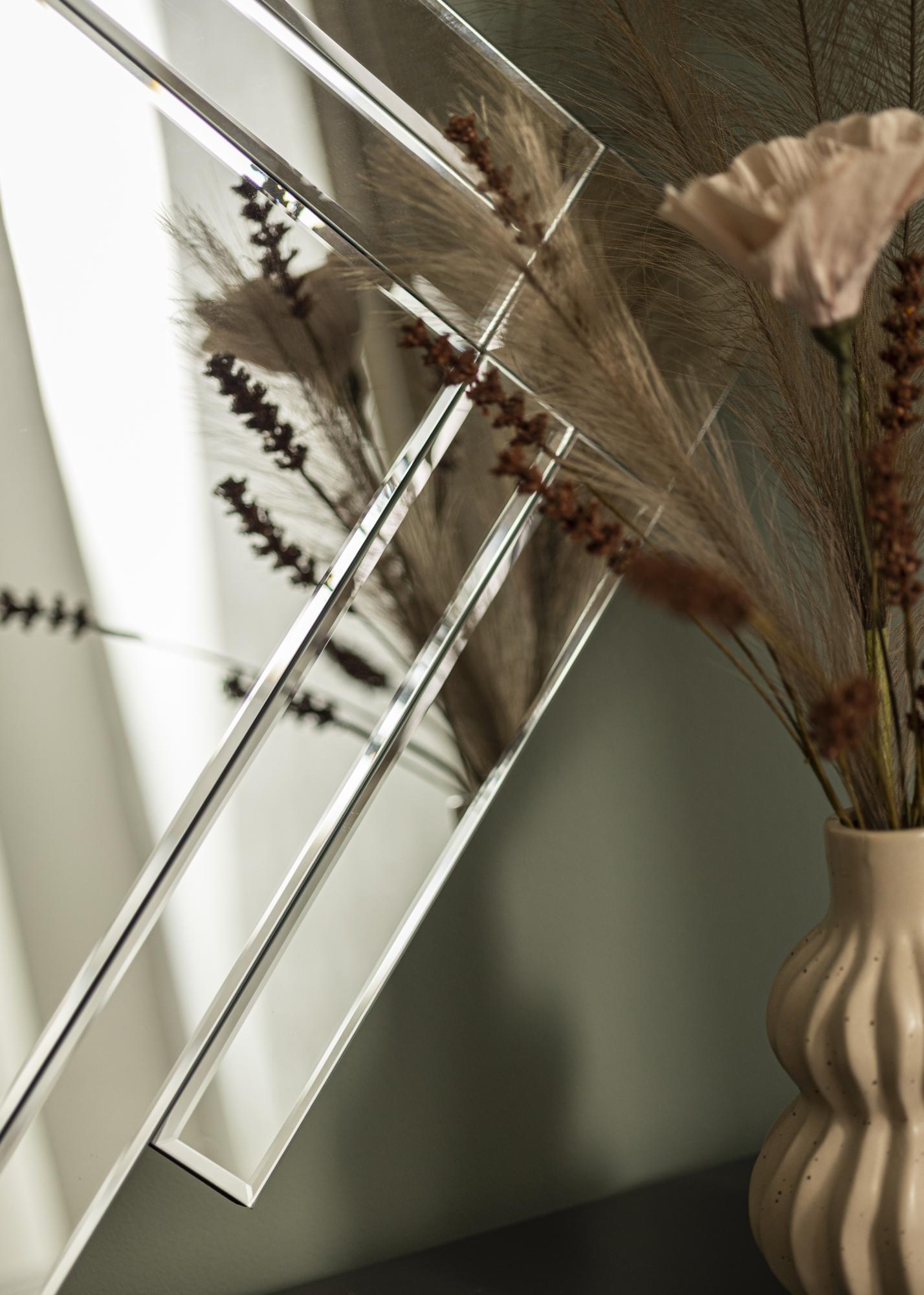 Dzięki nowoczesnej, geometrycznej kompozycji lustro jest więcej niż funkcjonalnym elementem; jest dziełem współczesnej sztuki. Świetnie pasuje do minimalistycznego środowiska lub jako kontrastowy detal w bardziej tradycyjnym wnętrzu. Niech to lustro stanie się tym wyjątkowym elementem, który dopełni Twój pokój stylem i elegancją.