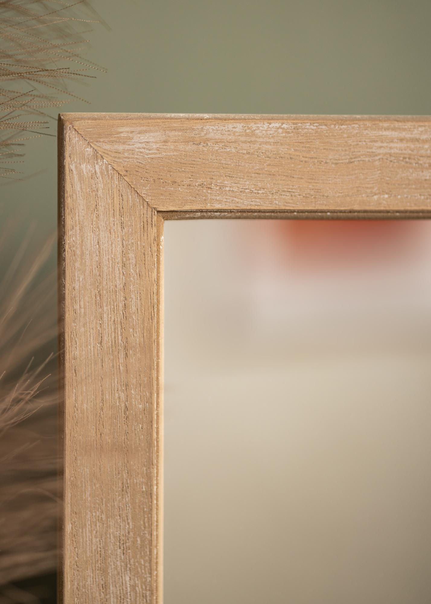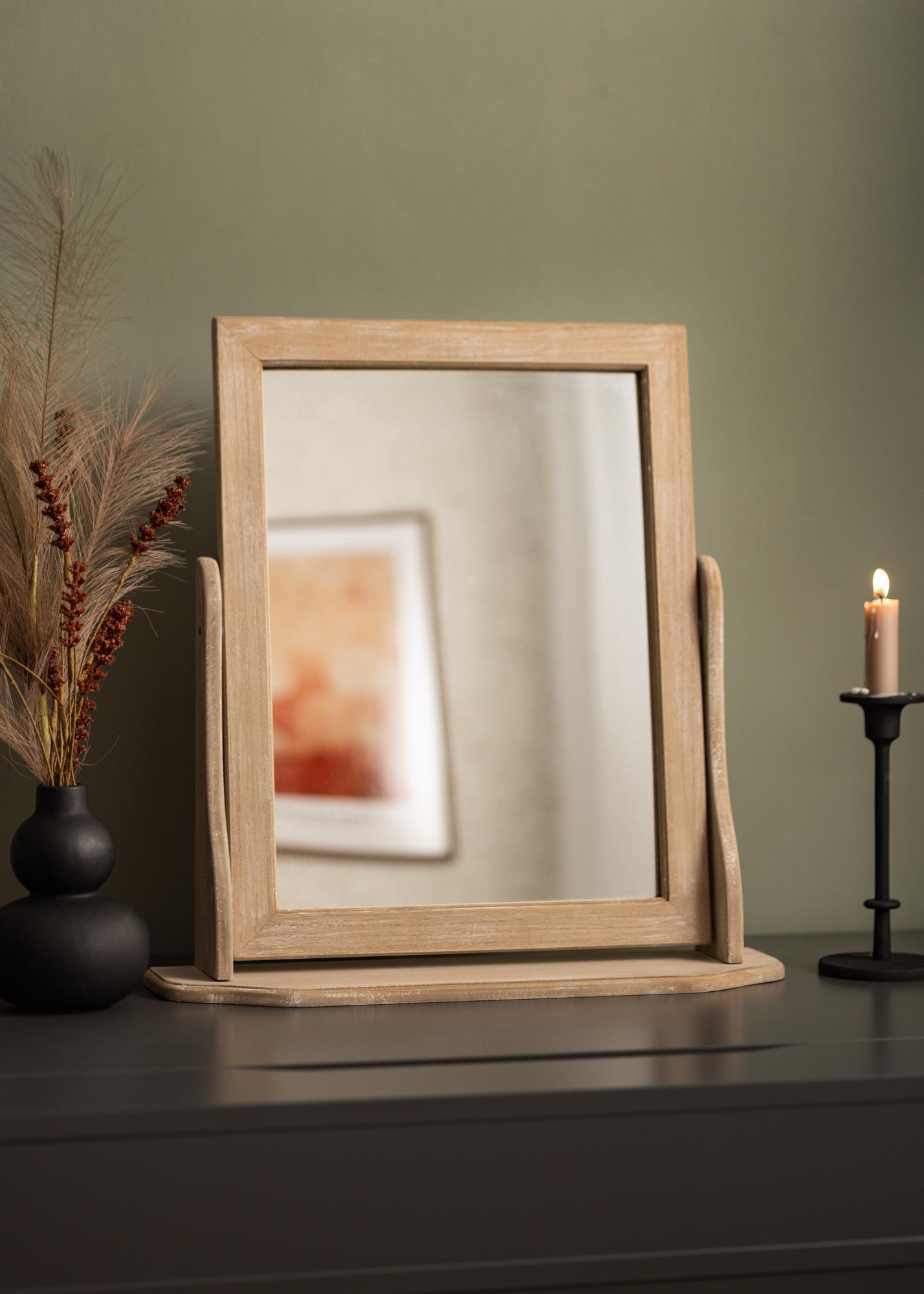 Lustro stoi stabilnie na solidnej podstawie, zaprojektowanej do umieszczenia na toaletce lub komodzie. Prostokątny kształt jest klasyczny i dodaje miękkiego akcentu do pokoju, jednocześnie zapewniając jasne odbicie, które pozwala widzieć siebie w najlepszym możliwym świetle.