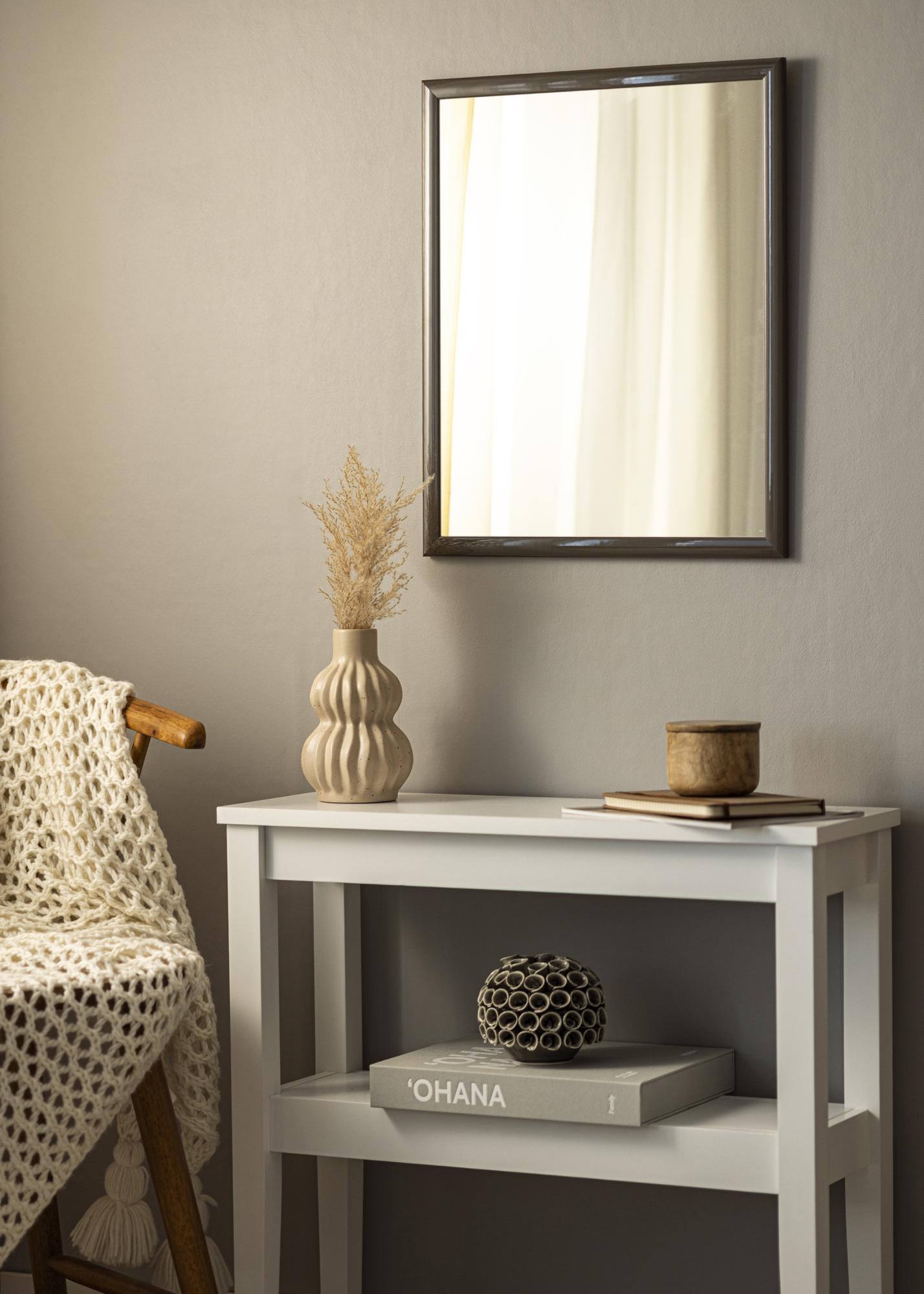 Dzięki swojej ciemnoszarej kolorystyce i wysokopołyskowemu wykończeniu Lustro Dorset oferuje elegancką i refleksyjną powierzchnię, która naprawdę przyciąga wzrok. Gładkie wykończenie lakierem wzmacnia głębię koloru i tworzy żywy wyraz, który nadaje pomieszczeniu wyrafinowany charakter. Błyszcząca powierzchnia odbija światło w sposób, który daje dynamiczny blask w zależności od kąta, co sprawia, że lustro staje się centralnym punktem aranżacji wnętrza.