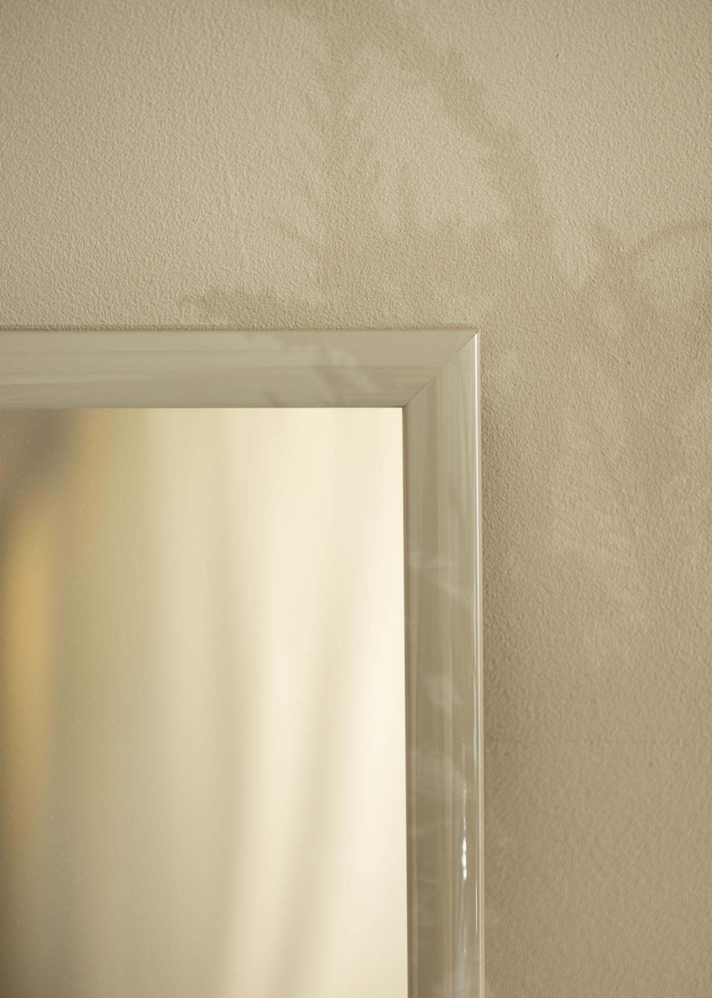 To lustro wykonane jest z drewna Ajous, co zapewnia mu trwałą i wysokiej jakości konstrukcję. Jasnoszary kolor z wysokim połyskiem nadaje lustrze wyrafinowaną i refleksyjną powierzchnię. Gładkie lakierowanie podkreśla subtelne odcienie koloru i tworzy żywy efekt, który zmienia się w zależności od kąta padania światła.