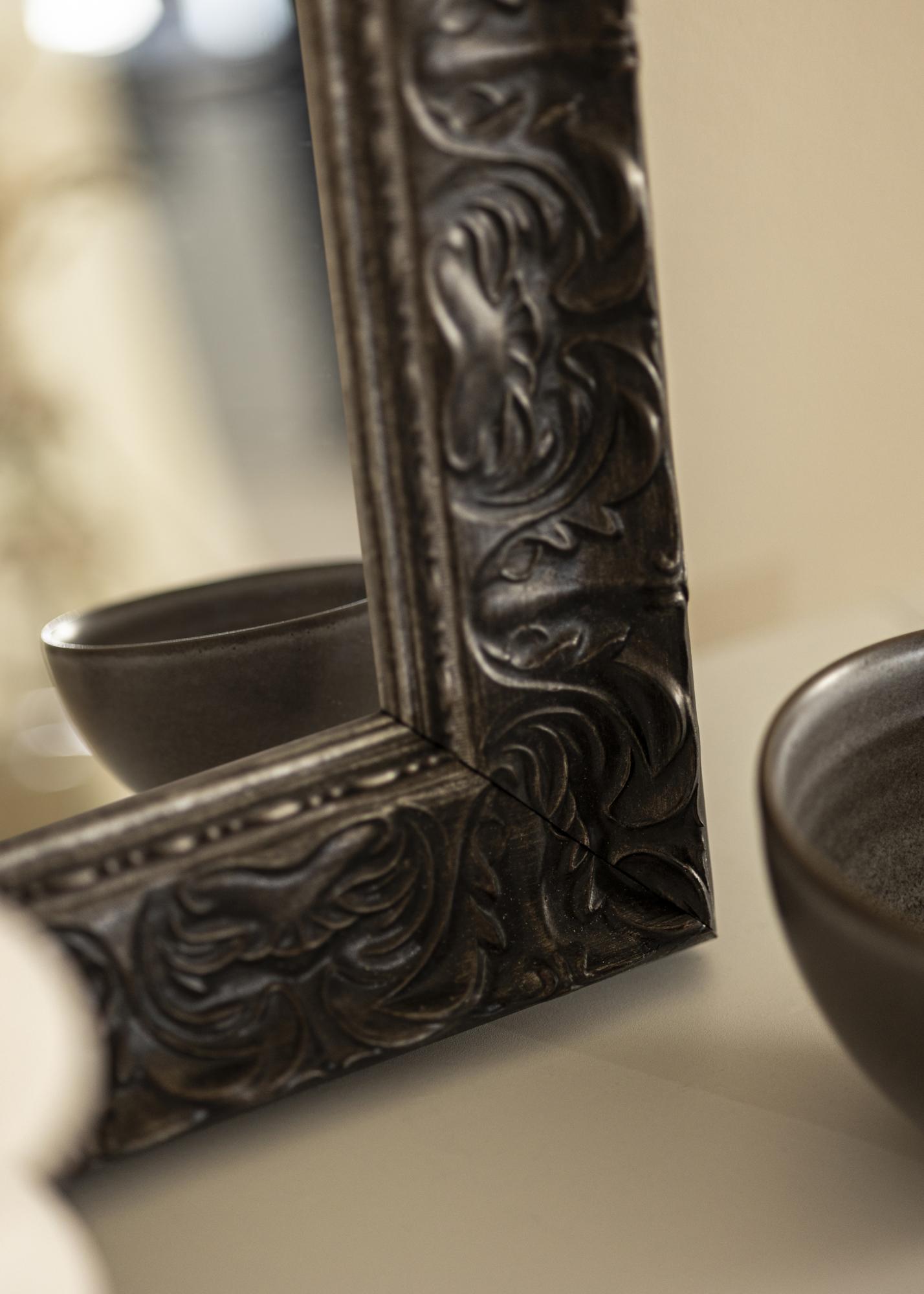 Rama lustra Durham Czarny ma szerokość 70 mm, co nadaje lustrze mocny i solidny charakter. Głębokość 35 mm przyczynia się do jego stabilności i sprawia, że bezpiecznie wisi na ścianie. Wykonane z sosny, to lustro ma ciemne antyczne brązowe wykończenie, które nadaje mu starzejący się wygląd, wzmacniając jego klasyczny i rustykalny charakter.
