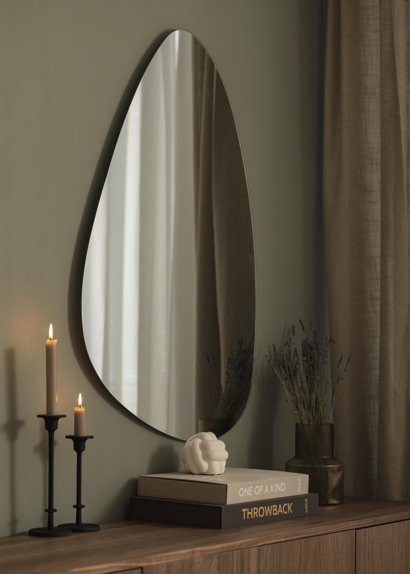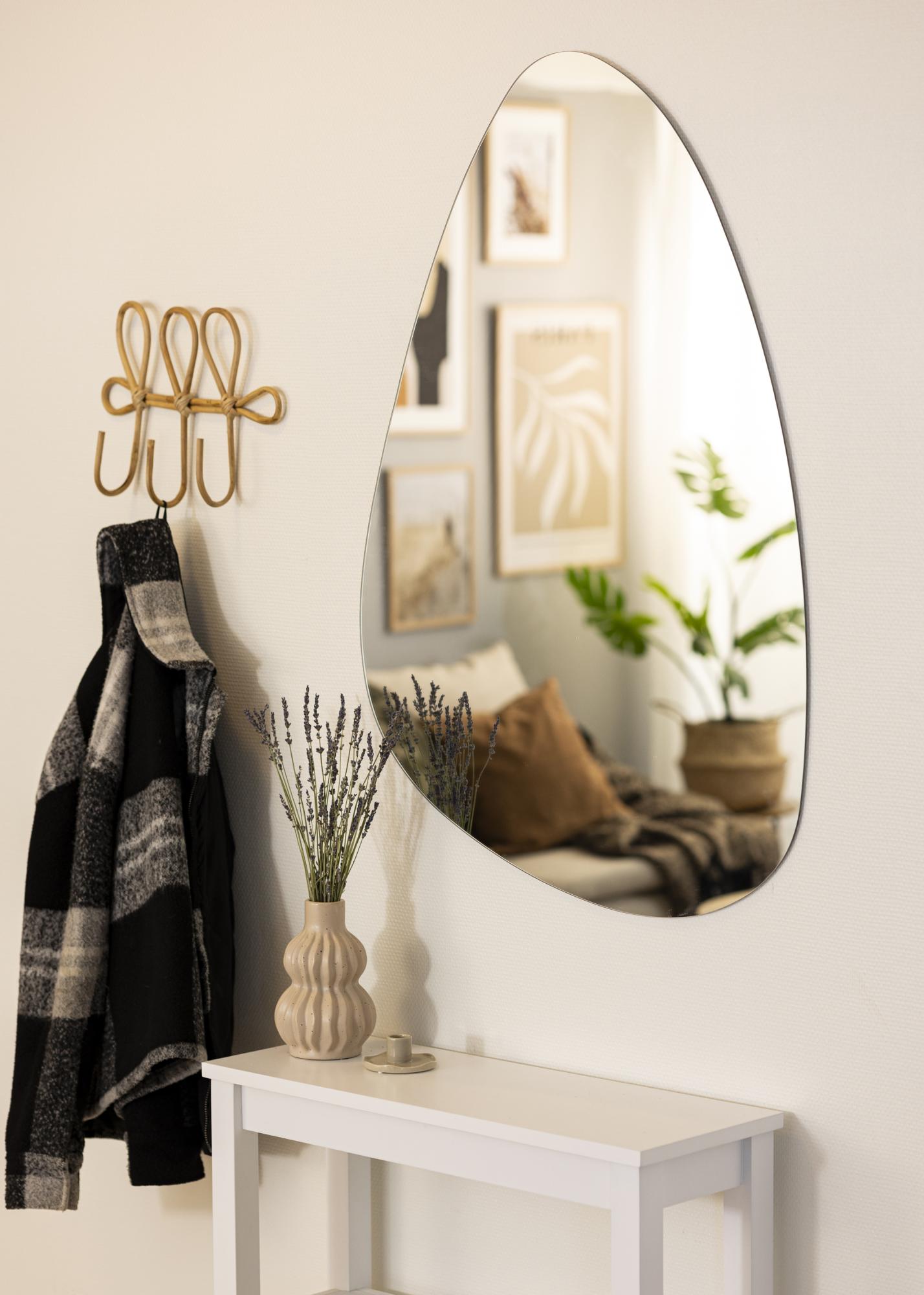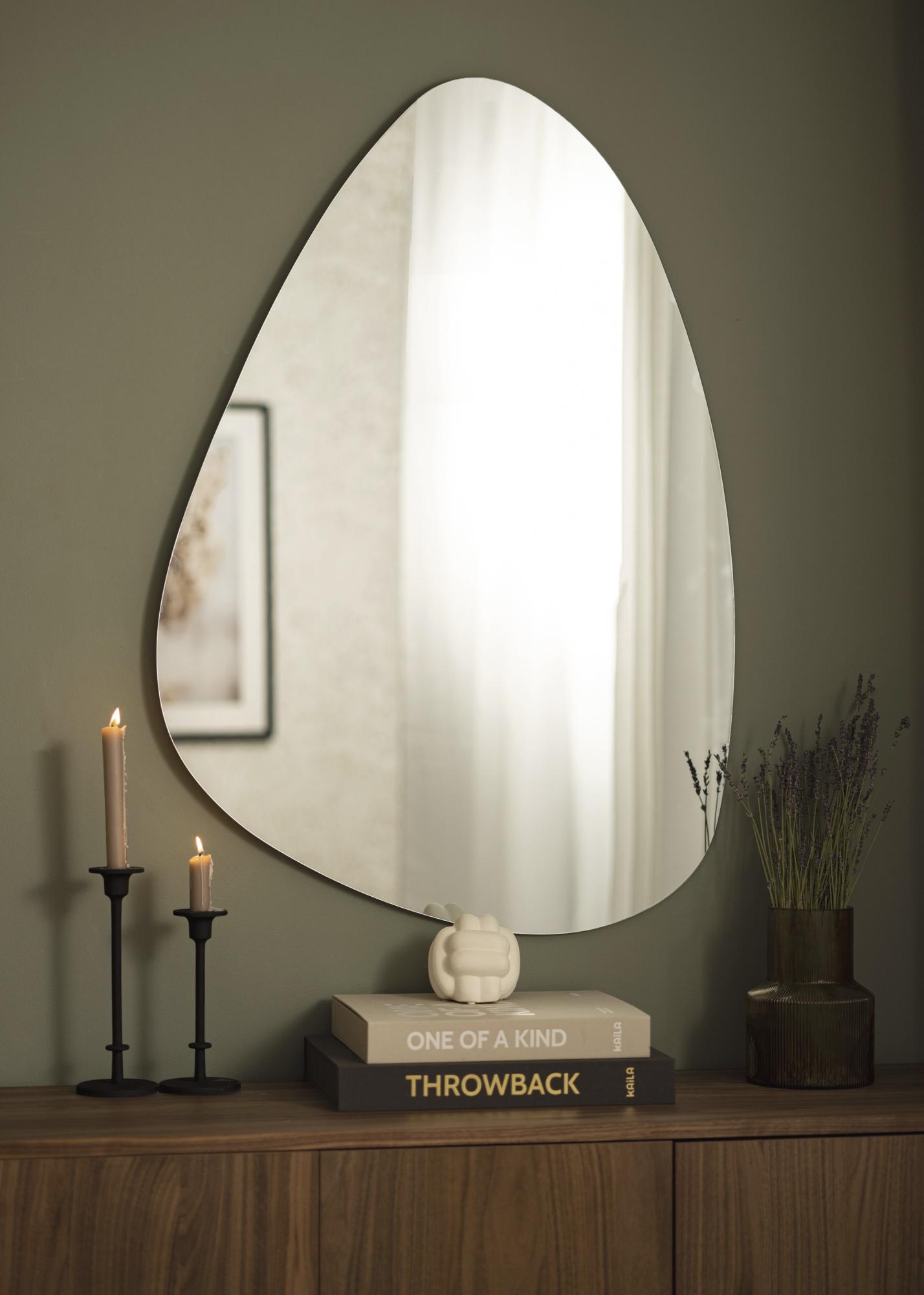 To lustro jest idealne dla Ciebie, jeśli szukasz eleganckiego lustra w minimalistycznym stylu. Asymetryczny kształt łączy się z cienkim szkłem lustrzanym i krawędziami bez ram, co daje bardzo elegancki efekt. Z tyłu znajdują się mocowania do ściany.