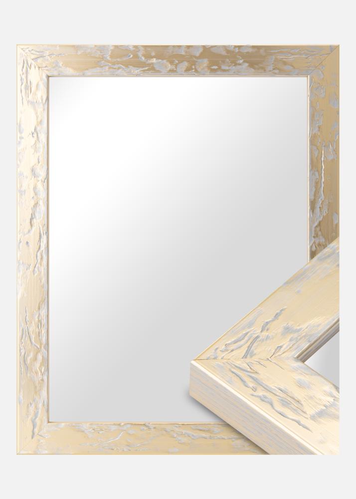 Freja to piękne złote lustro z nierówną żyłkowaną powierzchnią z srebrzystymi nierównościami. Dzięki swojemu połączeniu srebra i złota Freja uzyskuje przyjemny odcień, który bardziej skłania się ku srebru niż złotu. Dzięki głębokiemu profilowi o 30 mm, Freja Złoto odstaje nieco od ściany, co nadaje lustrze piękną głębię.