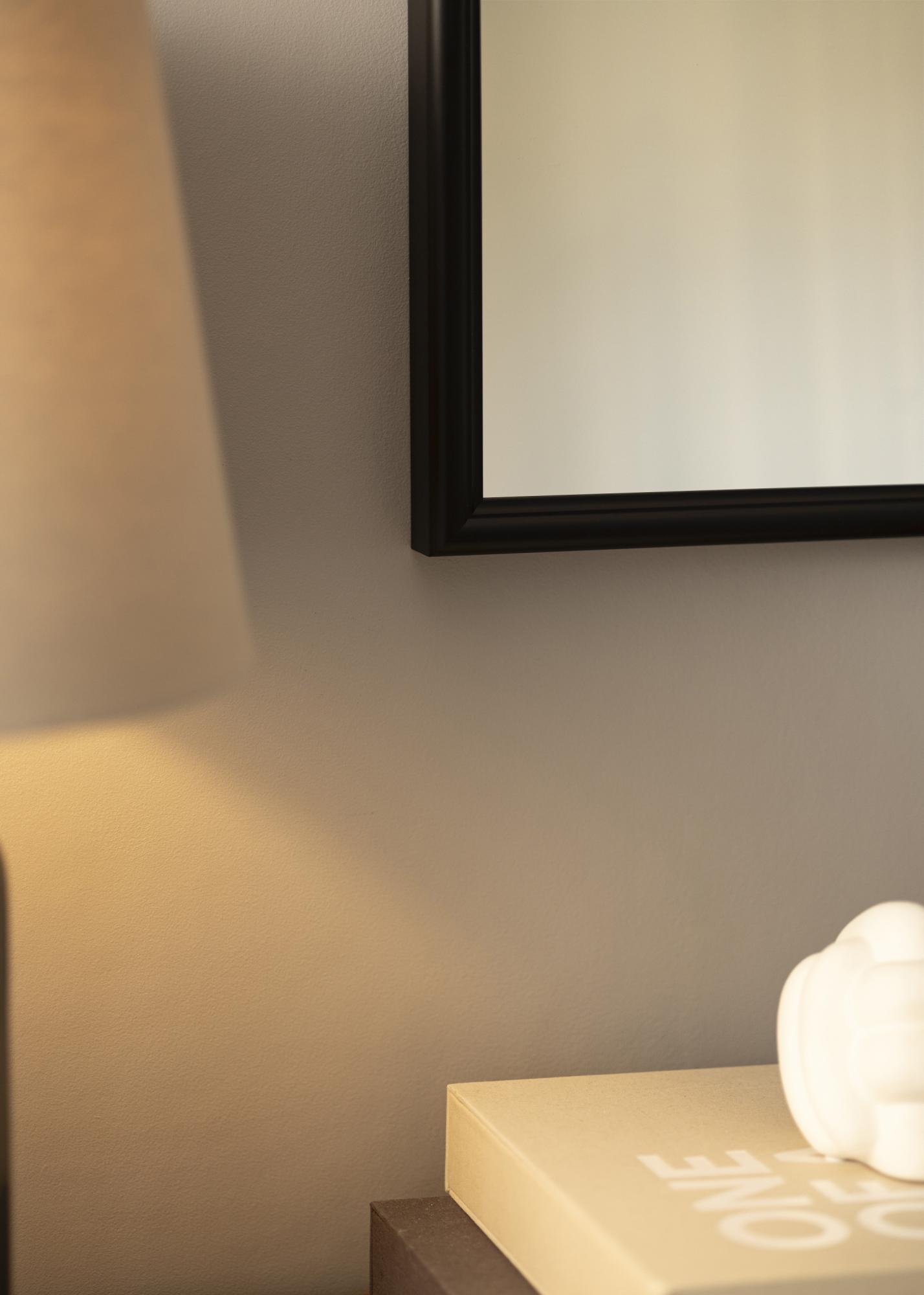 Högbo to pięknie profilowane czarne lustro o wysokiej jakości, które doskonale pasuje, gdy szukasz eleganckiego lustra z głębokim profilem wychodzącym z ściany.