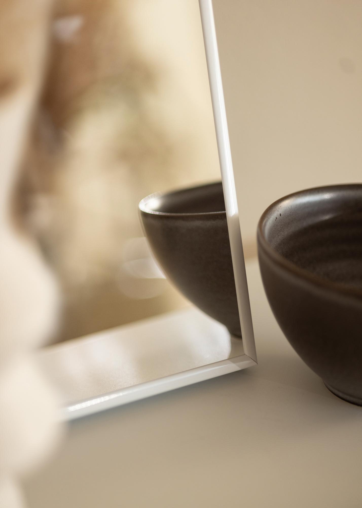 Kopenhaga Biały ma prostą aluminiową ramę, która idealnie pasuje, gdy szukasz prostego i dyskretnego lustra.