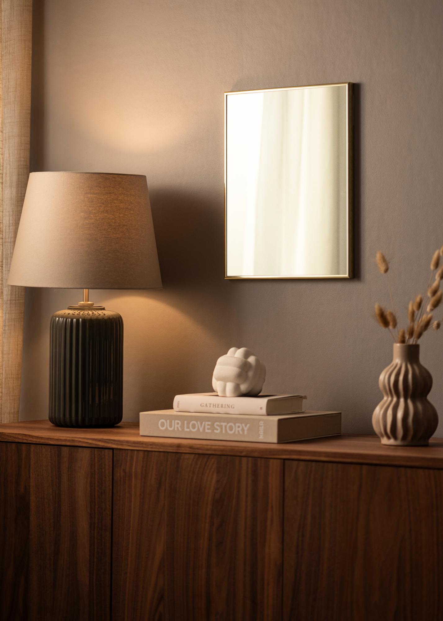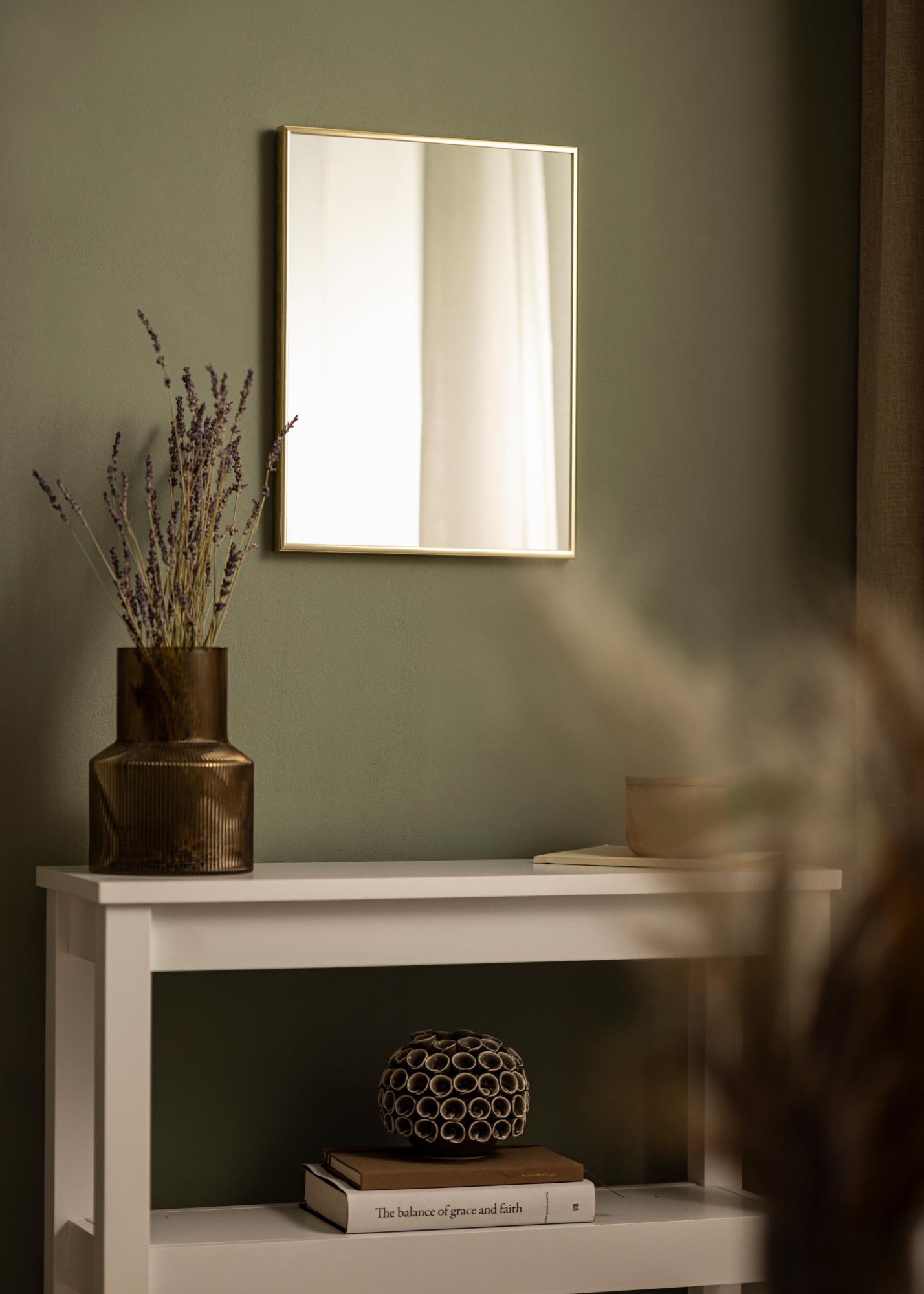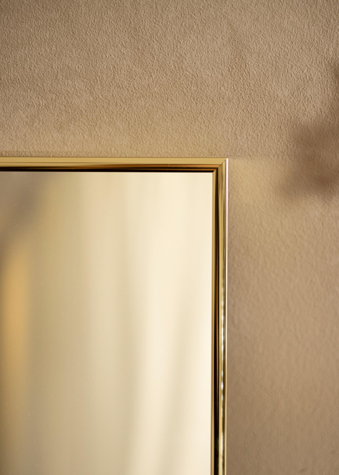 Kopenhaga Złoty ma prostą aluminiową ramę, która idealnie pasuje, gdy szukasz prostego i dyskretnego lustra.