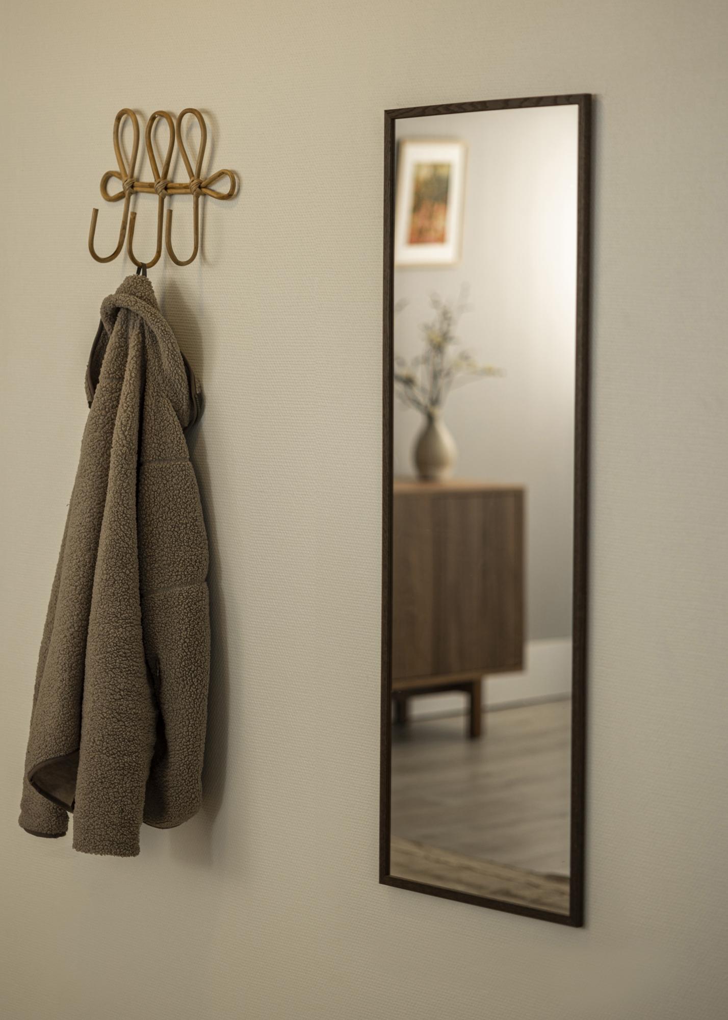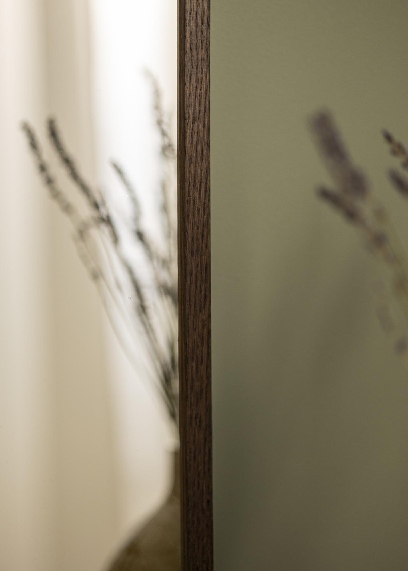 Rama lustra wykonana jest z prawdziwego drewna dębowego i ma głęboki ciemny odcień dębu, który natychmiast przyciąga uwagę. Gruba rama daje solidne wrażenie i przyczynia się do ogólnej prezencji lustra. To lustro to nie tylko praktyczny dodatek, ale także dzieło sztuki, które uzupełnia zarówno nowoczesne, jak i tradycyjne style wnętrz.