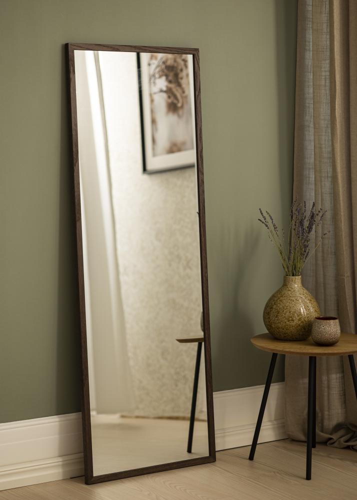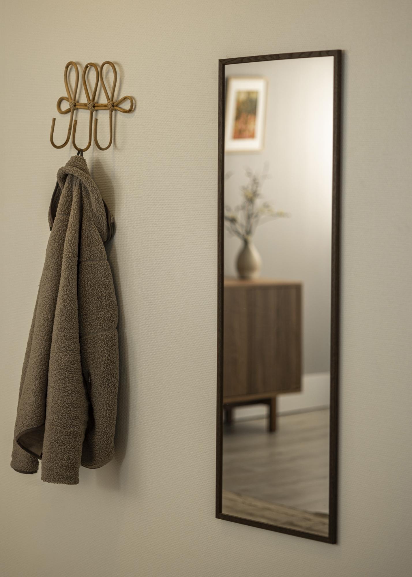 Rama lustra wykonana jest z prawdziwego drewna dębowego i ma głęboki ciemny odcień dębu, który natychmiast przyciąga wzrok. Grubość ramy dodaje wrażenia solidności, nadając lustru wyraźną obecność na ścianie. To lustro jest nie tylko praktycznym dodatkiem, ale także dziełem sztuki, które dopełnia i podkreśla Twoje wnętrze.