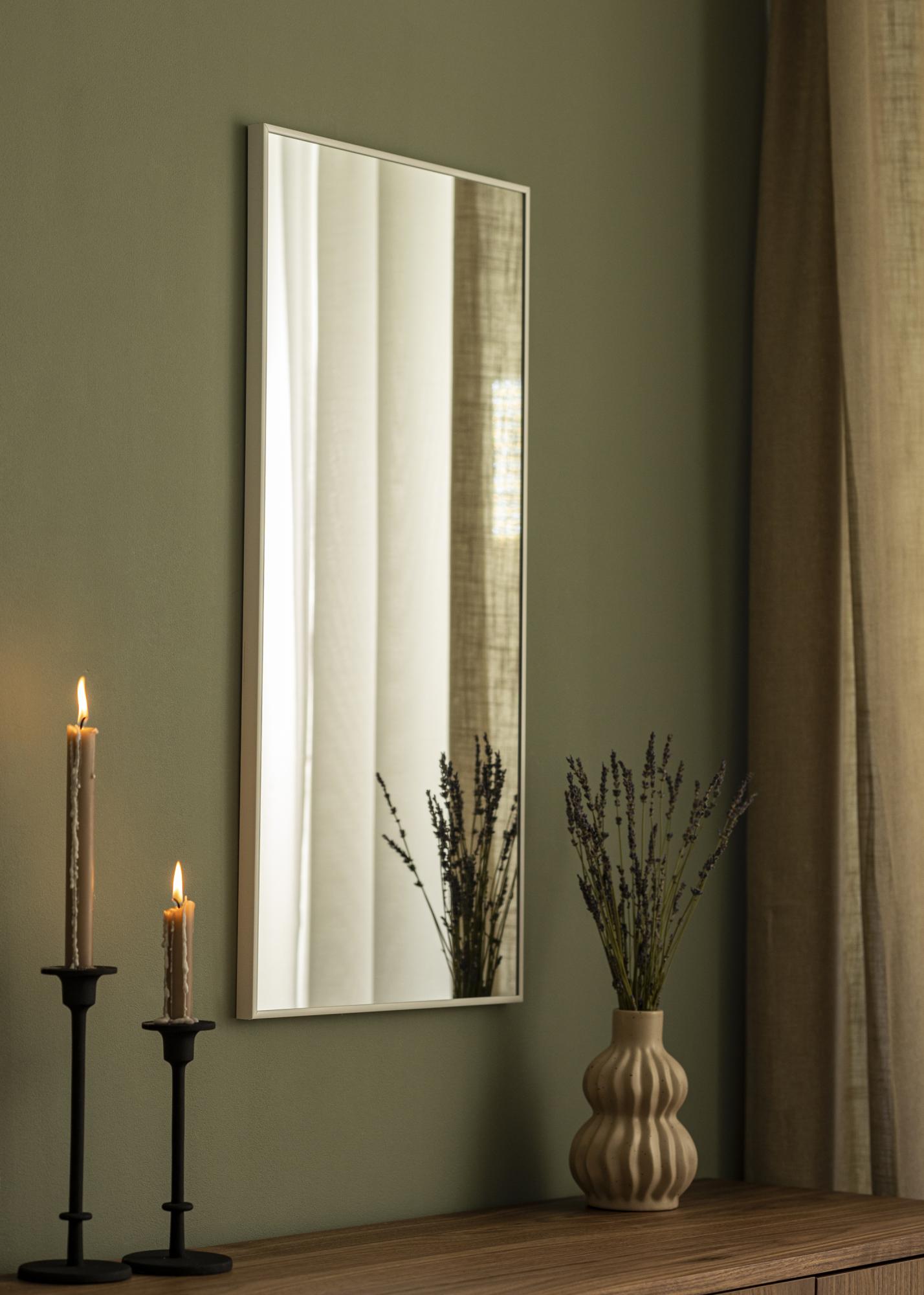 Stwórz poczucie przestrzeni i światła w swoim domu dzięki temu eleganckiemu lustru. Ze swoimi wymiarami 40,5x80,5 cm jest idealne do stworzenia iluzji większego pomieszczenia lub jako praktyczny element w przedpokoju. Biała aluminiowa rama nadaje nowoczesny akcent, jednocześnie utrzymując projekt czysty i ponadczasowy.