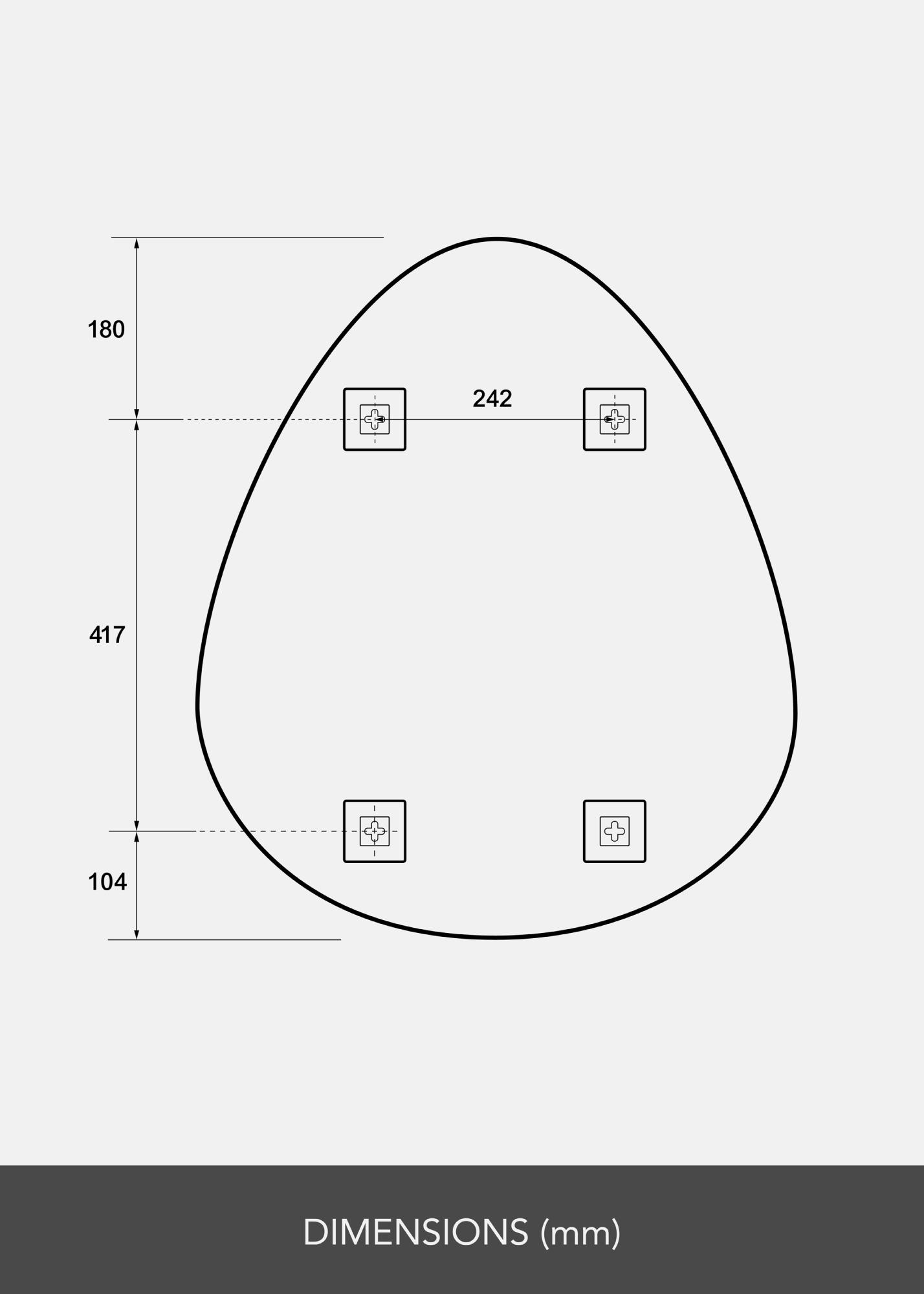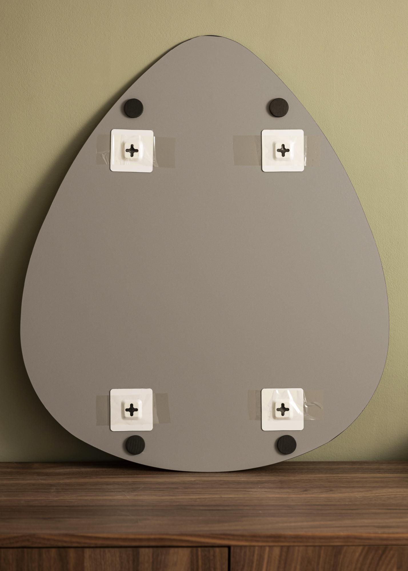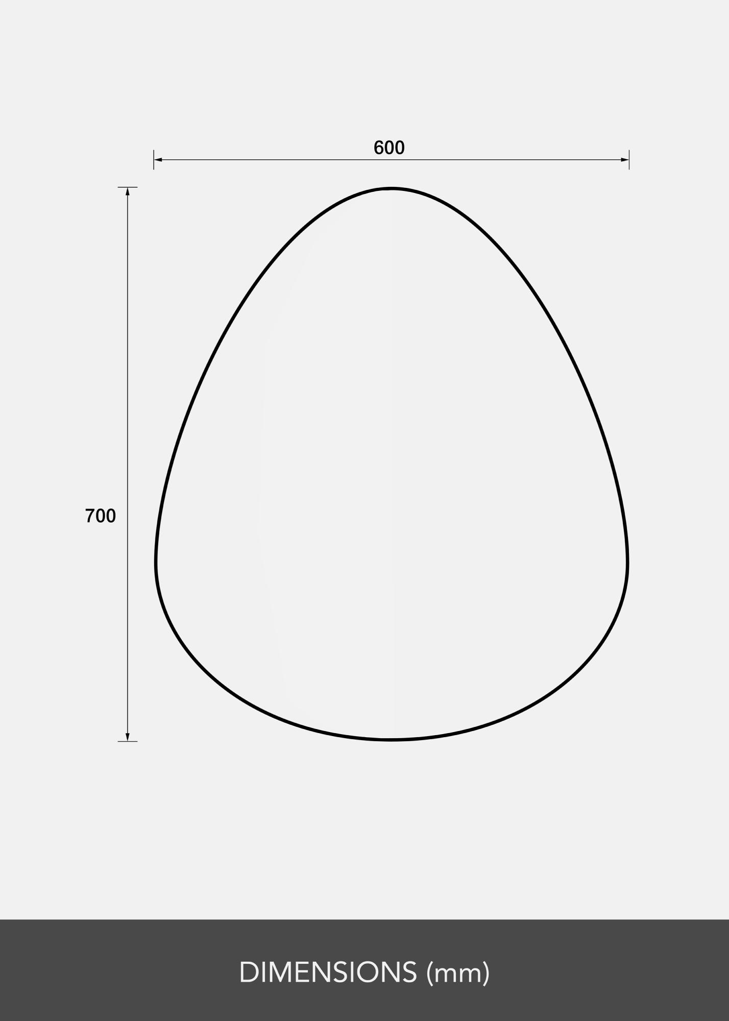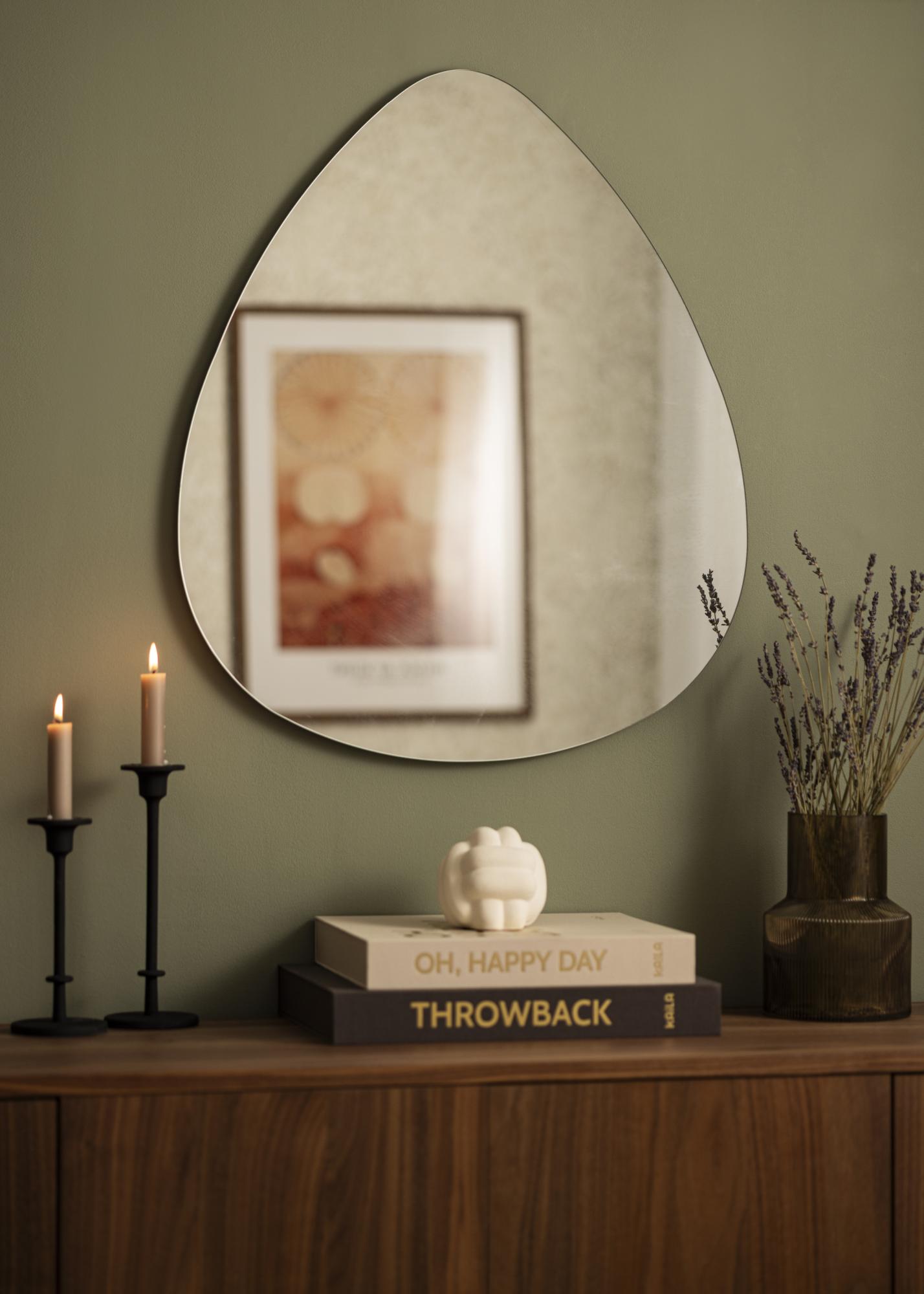 Design lustra jest zarówno nowoczesny, jak i ponadczasowy, z szerokim, zwężającym się i zaokrąglonym szczytem, który tworzy charakterystyczną sylwetkę w kształcie kropli. Ten kształt dodaje miękkości i organicznego wrażenia pomieszczeniu, co sprawia, że lustro pasuje do wielu różnych stylów wnętrza.