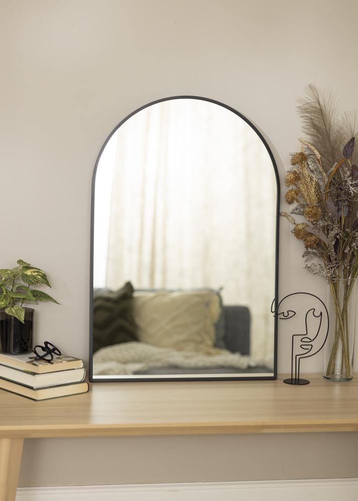 To doskonały wybór dla osób poszukujących lustra o nowoczesnym designie z modnym łukowatym kształtem i stylową czarną ramą. Rama lustra ma głębokość 28 mm i jest wykonana z metalu. To lustro stanie się dekoracyjnym akcentem w przedpokoju lub salonie, gdzie będzie pięknie odbijać światło ze wszystkich źródeł światła w pomieszczeniu. Solidny materiał sprawia, że można go również używać w łazience.