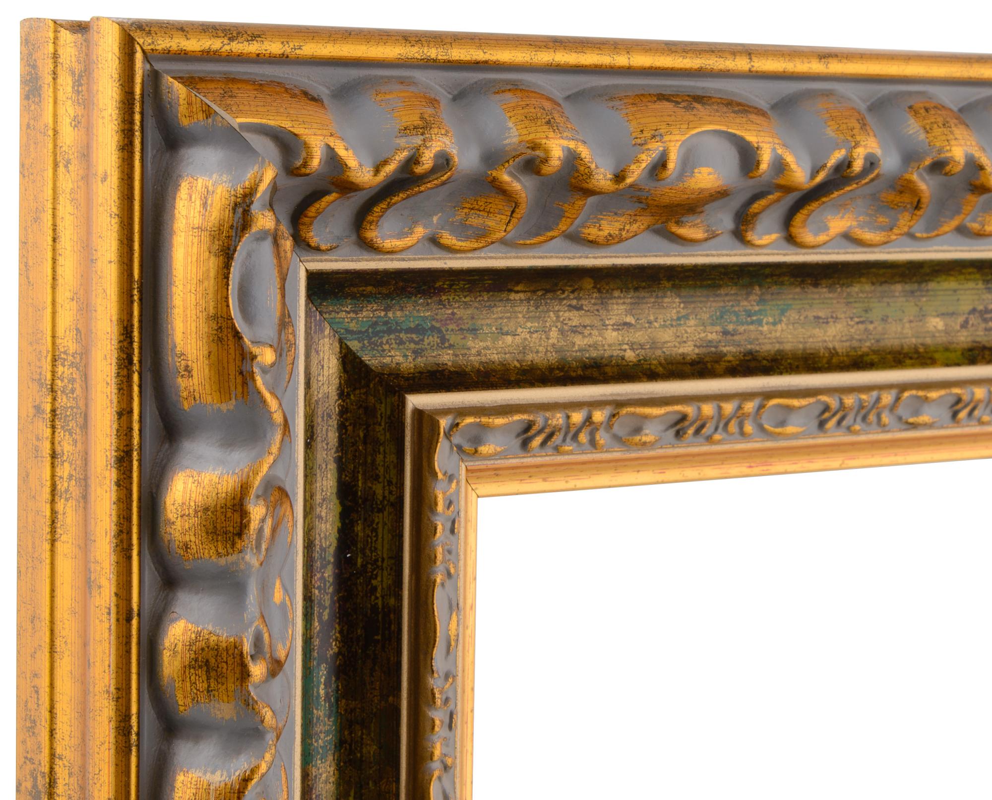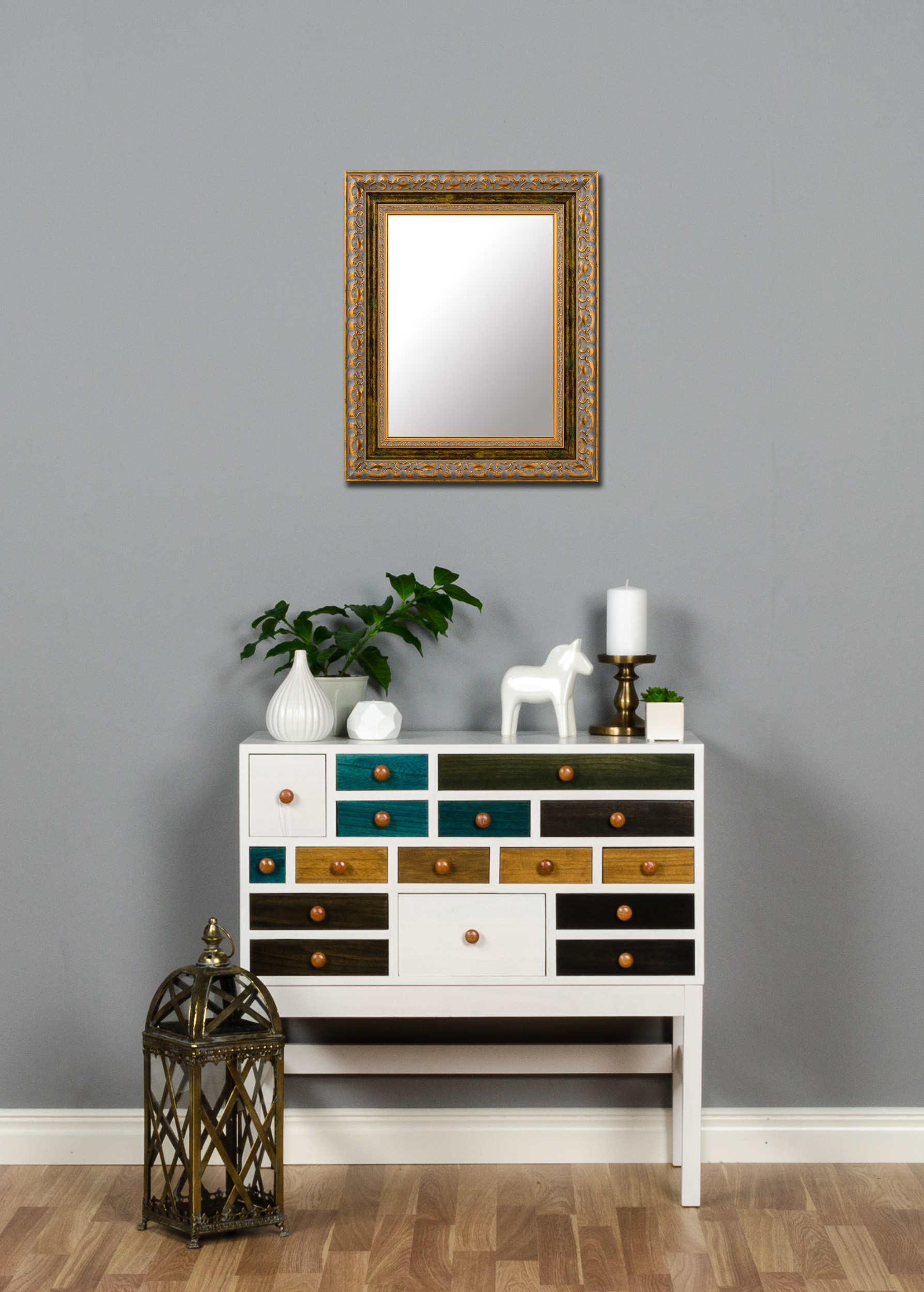 Z pomocą odpowiedniego lustra możesz odmienić wygląd całej ściany! To luksusowe złote lustro ma ciekawy design, który przyciąga uwagę. Rama drewniana z przodu posiada zarówno duży, jak i mniejszy pas ze wzorem ozdobnym, który przełamany jest wytartym fragmentem. Powierzchnia jest tak przygotowana, by wyglądała charakterystycznie staro. Ponieważ lustro produkowane jest na podstawie Twoich wymiarów, możesz być pewien, że będzie pasować dokładnie tam, gdzie chcesz!