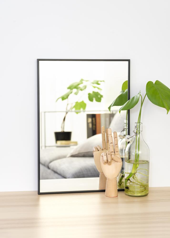 Sku:Eleganckie lustro z czarną aluminiową ramą. Lustro jest wyposażone w sprytne mocowania ścienne, które ułatwiają jego zawieszenie.
