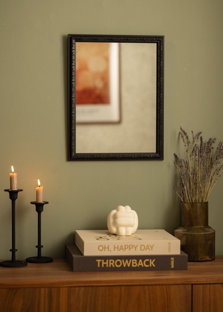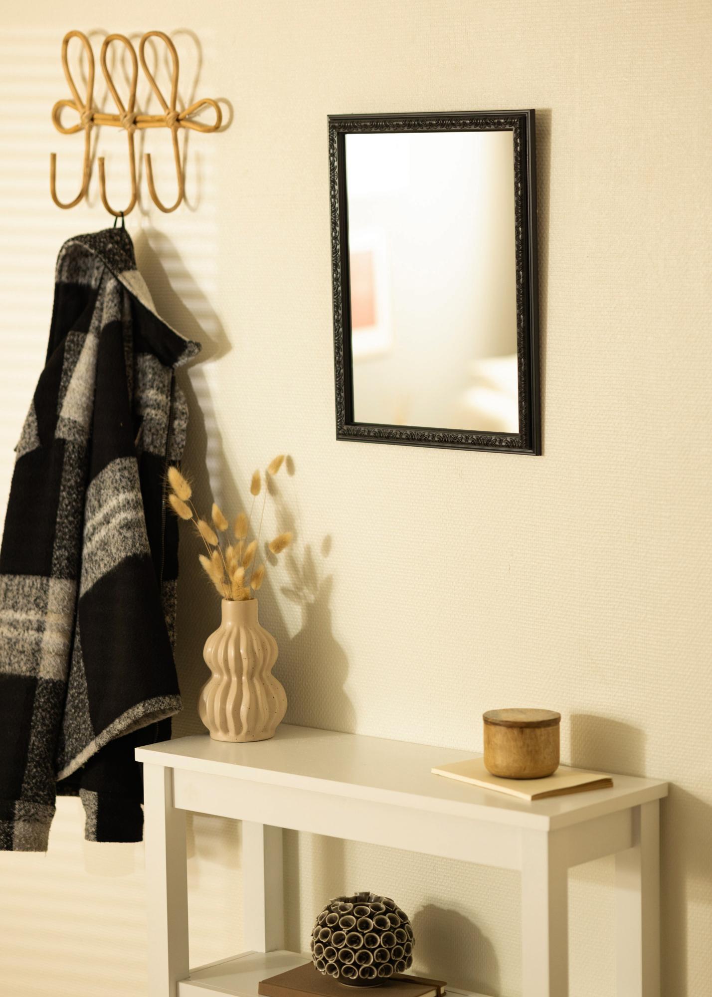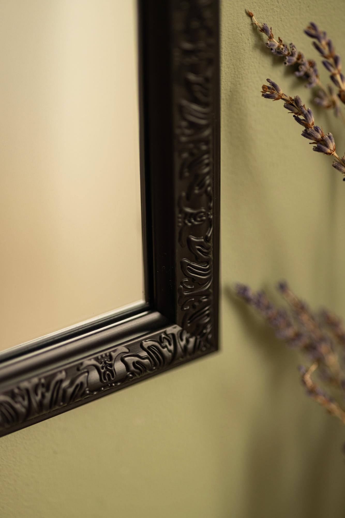 Uruchom wyszukiwarkę ramek »Nost Czarny nazywa się seria luster ściennych. Rama jest bogato zdobiona nieregularnymi symbolami, które nadają lekko tajemniczy wygląd.